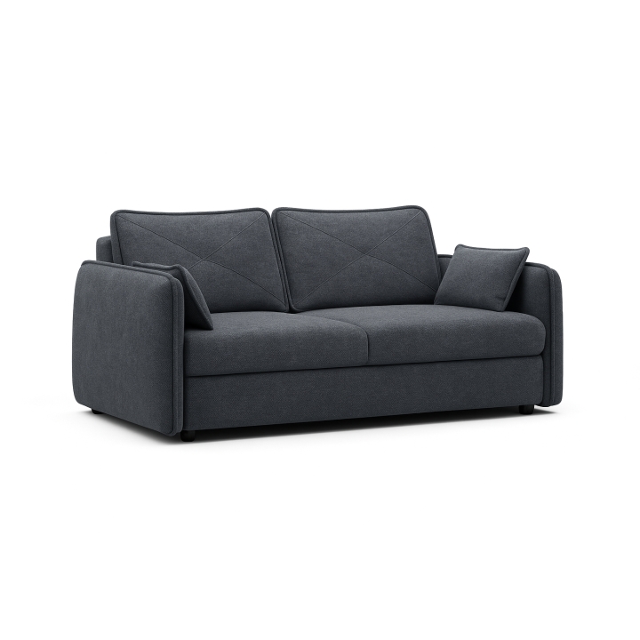 Wyposażenie sofy w mechanizm rozkładania typu delfin umożliwia szybkie i płynne przekształcenie mebla w łóżko. Powierzchnia spania o wymiarach 195 × 145 cm zapewnia komfortowy sen dla dwóch osób, co czyni sofę odpowiednim wyborem zarówno do salonu, jak i pokoju gościnnego. Dodatkowo model posiada pojemnik na pościel, który ułatwia utrzymanie porządku i oszczędność miejsca w mieszkaniu.