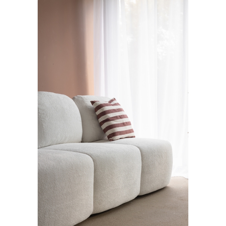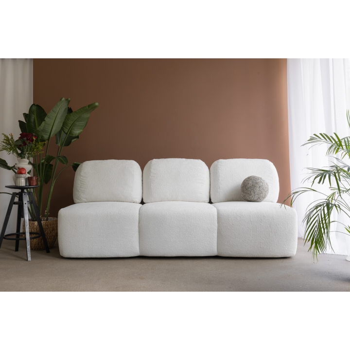 Staranna jakość wykonania przekłada się na znakomite podparcie dla ciała - siedzisko wypełniono sprężyną falistą oraz pianką wysokoelastyczną, dzięki czemu sofa zachowuje swoją sprężystość przez lata. Siedzisko zostało umieszczone na wysokości 45 cm i posiada 58 cm głębokości. Trzy owalne poduchy oparciowe tworzą miękką, otulającą powierzchnię, która wpływa na wysoki komfort wypoczynku.