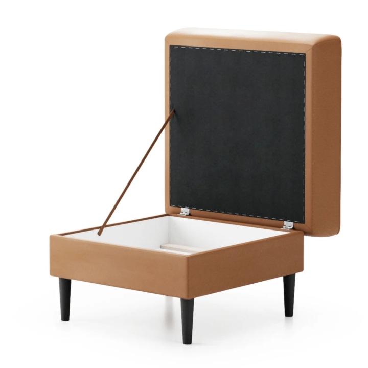 Pufa Tivoli wyróżnia się prostą, elegancką formą, stylowymi drewnianymi nóżkami oraz przyjemną w dotyku tapicerką. Dodatkowym atutem jest pojemny schowek na drobiazgi ukryty pod siedziskiem, który zwiększa funkcjonalność mebla. Kolor i rodzaj tkaniny a także kolor nóg można dobrać samodzielnie w naszym konfiguratorze, co pozwala na pełne dopasowanie pufy do wystroju wnętrza.