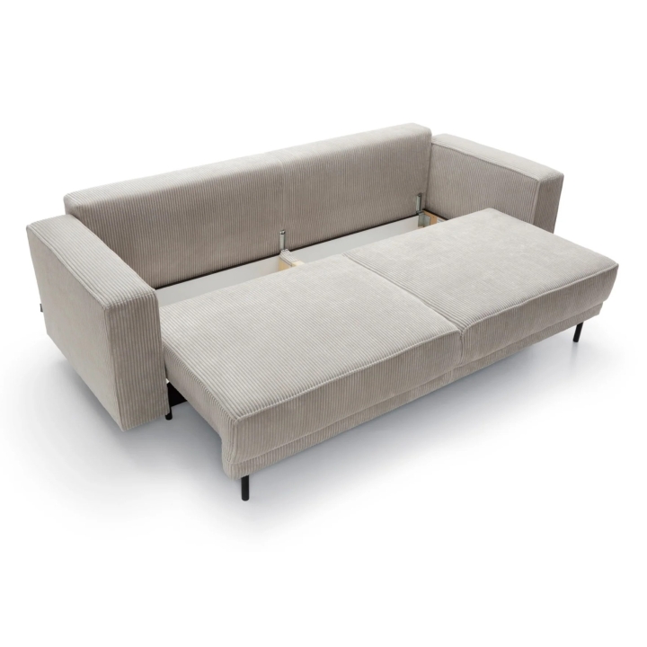 W sofie zastosowano mechanizm rozkładania typu DL, który pozwala w prosty sposób zamienić mebel w łóżko. System polega na wysunięciu siedziska do przodu i złożeniu oparcia w powstałe miejsce, co tworzy równą i solidną powierzchnię spania o wymiarach 200 x 140 cm. Całość jest intuicyjna w obsłudze i sprawdzi się również jako dodatkowe miejsce noclegowe.