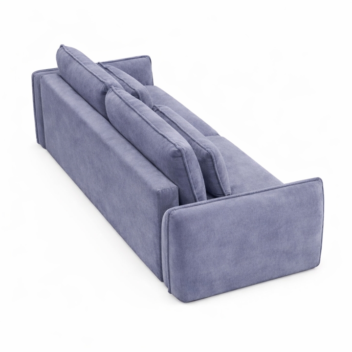 Obszerne siedzisko o szerokości 200 cm, wysokości 44 cm i dwóch poziomach głębokości – 78 cm do poduszki oraz 98 cm do oparcia – pozwala zrelaksować się w pozycji siedzącej lub półleżącej. Wnętrze siedziska i oparcia wypełniono sprężyną falistą profilowaną oraz pianką poliuretanową, co zapewnia miękkość przy zachowaniu odpowiedniego podparcia. To rozwiązanie wpływa na komfort nie tylko podczas odpoczynku dziennego, ale również w czasie snu.