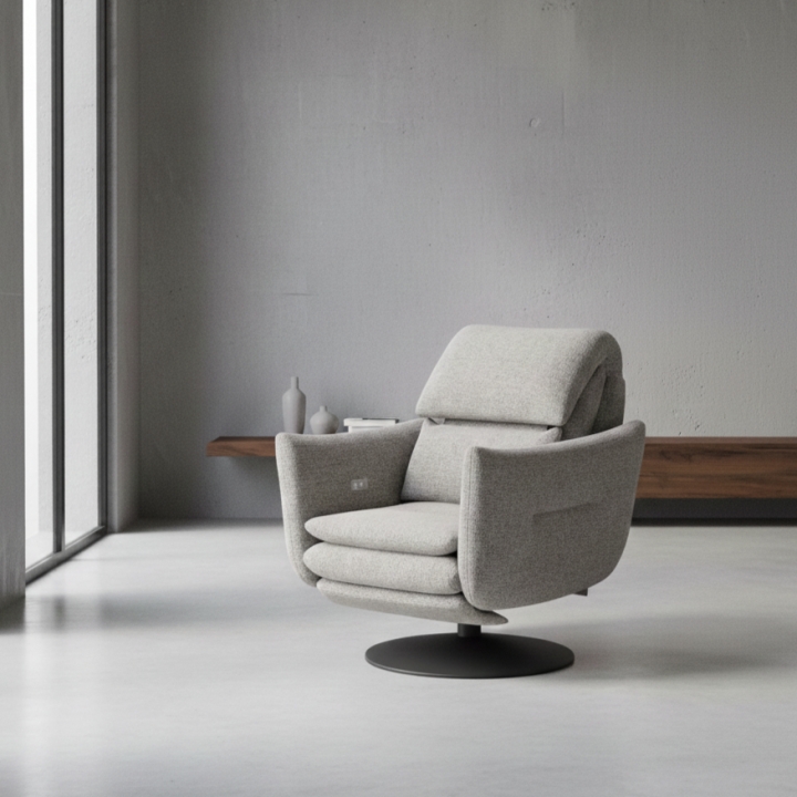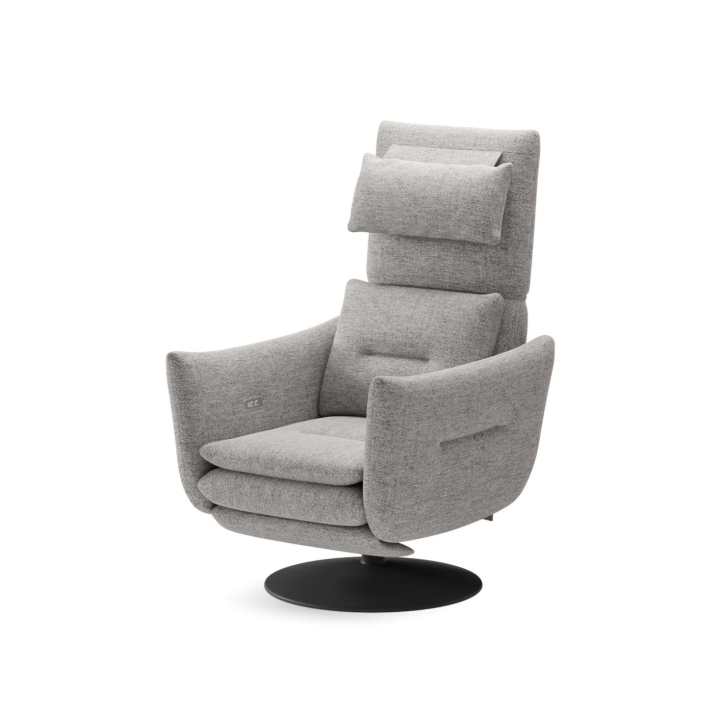 Fotel Roy z relaxem elektrycznym Puszman, zaprojektowany w ramach Puszman Studio, stanowi propozycję przeznaczoną zarówno do przestrzeni domowych, jak i biurowych. Model Roy wyróżnia się możliwością elektrycznego rozkładania oparcia oraz podnóżka, co pozwala na płynną zmianę pozycji siedziska. Dodatkowo konstrukcja została wyposażona w funkcję obrotu, zwiększającą swobodę użytkowania.
