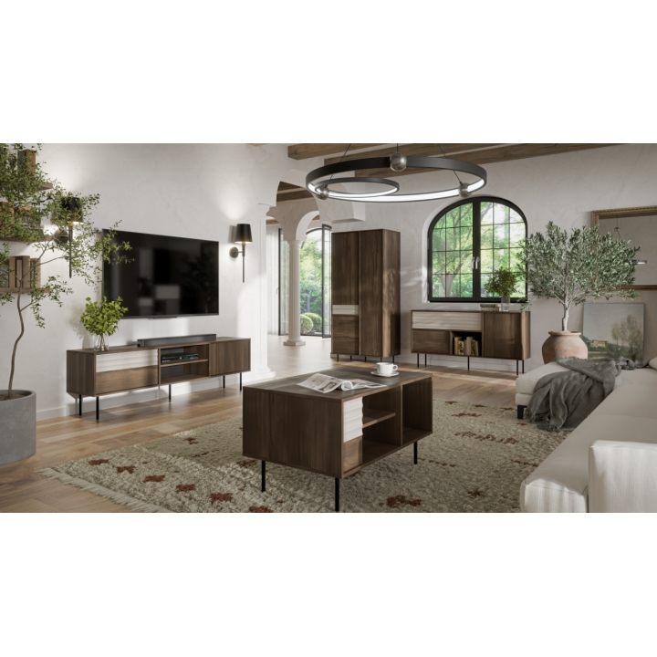 Stolik 96 Ebro producenta Restol to wyjątkowy mebel o szerokośi 97 cm, głębokośi 60 cm oraz wysokości całkowitej 55 cm. Sam korpus ma 35 cm wysokości. Mebel idealnie sprawdzi się jako stolik kawowy lub pomocniczy, stanowiąc centralny punkt każdej strefy wypoczynkowej w salonie.