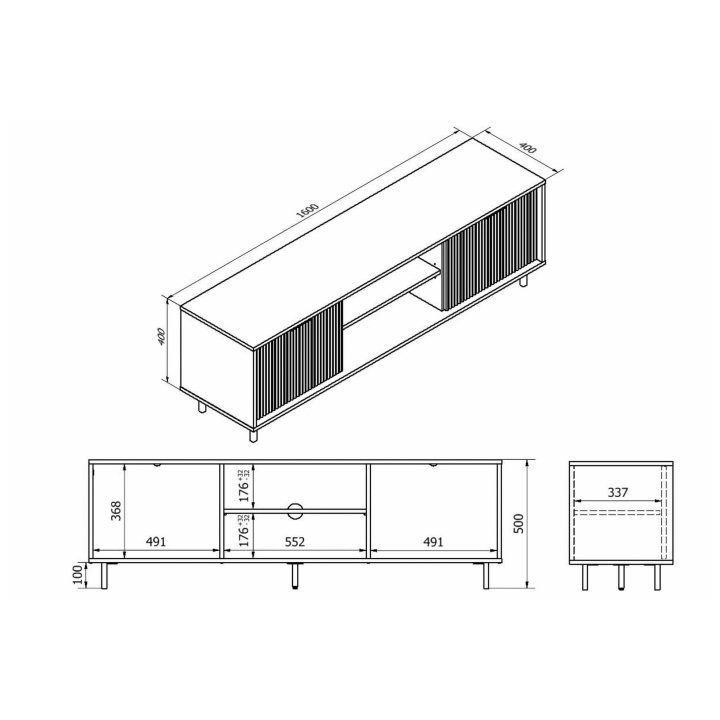 Szeroka szafka RTV 160 cm na metalowych nóżkach to kompletne rozwiązanie do zorganizowania strefy multimedialnej. Połączenie frezowanych frontów z cichym domykiem zapewnia komfort użytkowania i wygodne przechowywanie.