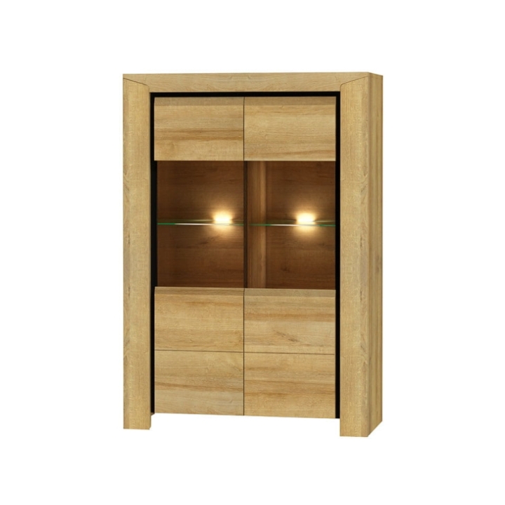 Witryna SIW-2 ma dwudrzwiową konstrukcję. Drzwi są częściowo przeszklone, co pozwala na jednoczesną ekspozycję i ukryte przechowywanie. Przeszklone sekcje odsłaniają dwie szklane półki, idealne do prezentacji dekoracji, szkła czy pamiątek. Za pełnym frontem witryna skrywa cztery dodatkowe półki (po dwie za każdymi drzwiami), wykonane z płyty laminowanej.