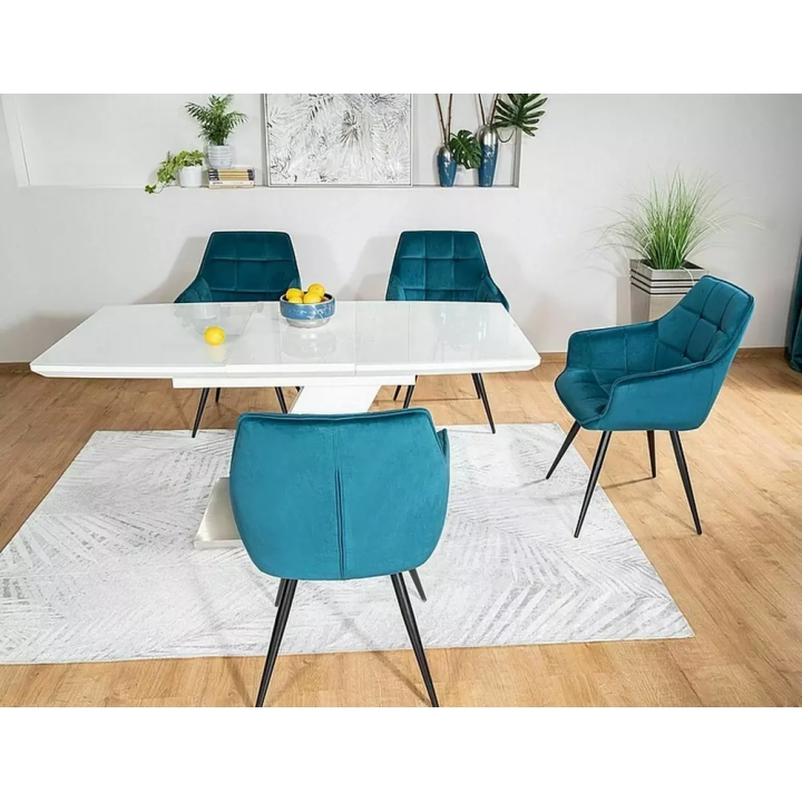 closeKrzesło Lilia Velvet marki Signal to elegancki mebel idealnie komponujący się we wnętrzach nowoczesnych i designerskich. Nogi krzesła są wykonane z metalu pomalowanego na czarno i ustawione pod kątem gwarantując stabilność i walory wizualne. Siedzisko wraz z oparciem krzesła są tapicerowane miłą w dotyku i pikowaną tkaniną Velvet zaś boki wyprofilowane.