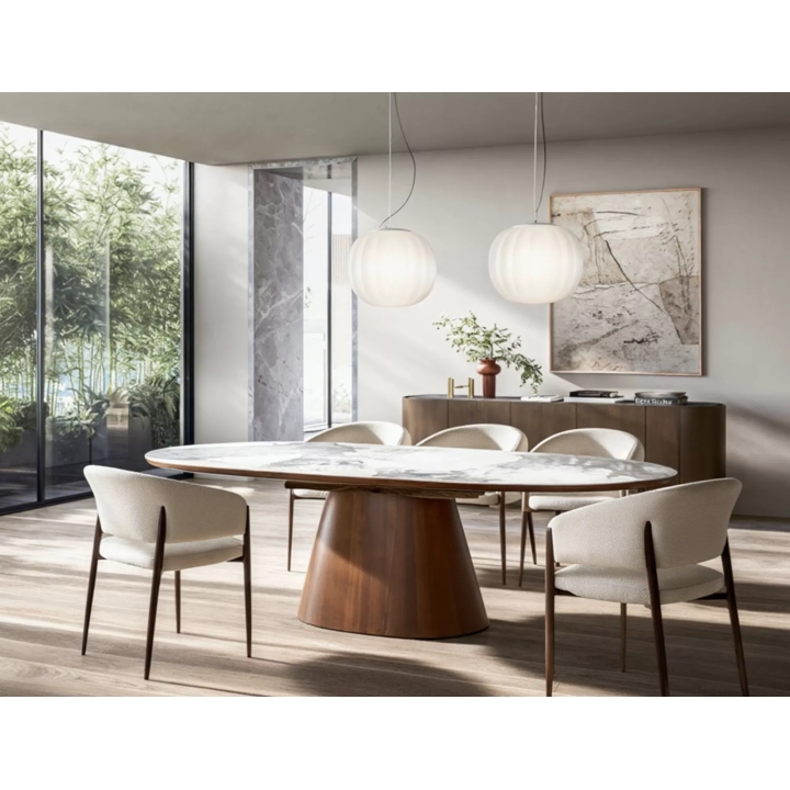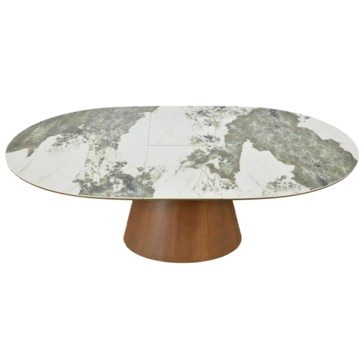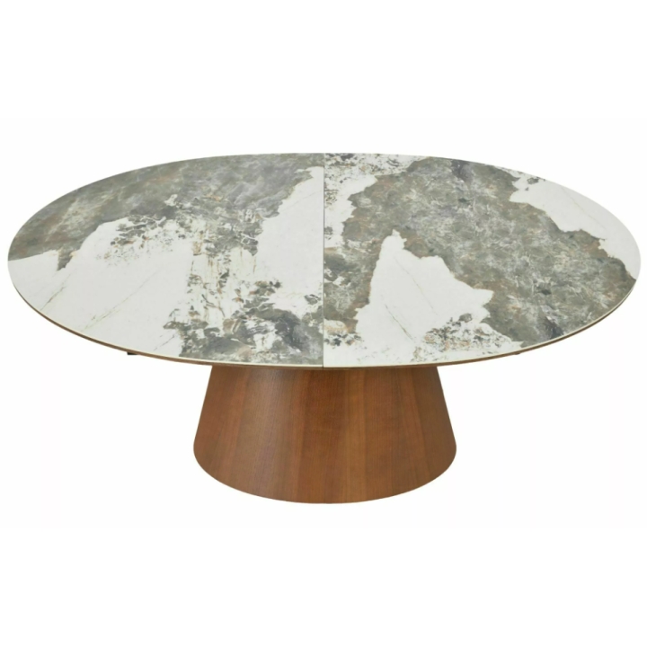 Stół Marocco Ceramic to propozycja do jadalni o szerokości 160 cm i głębokości 90 cm. Dzięki wbudowanemu mechanizmowi rozkładania szerokość blatu można powiększyć do 200 cm, co pozwala na ugoszczenie większej liczby osób. Owalny kształt i brak ostrych krawędzi sprawiają, że mebel sprzyja integracji domowników podczas wspólnych posiłków w jadalni lub salonie.