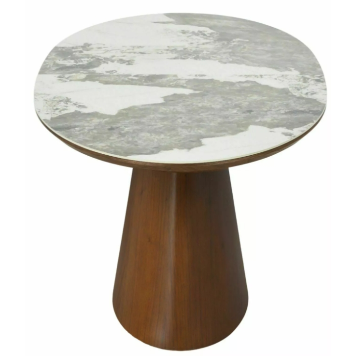 Głównym elementem dekoracyjnym stołu jest blat wykonany z połączenia ceramiki i płyty MDF, z wyraźnym wzorem imitującym naturalny kamień. Ceramiczna powierzchnia charakteryzuje się dużą odpornością na uszkodzenia, co ułatwia codzienne korzystanie z mebla bez obaw o jego stan.