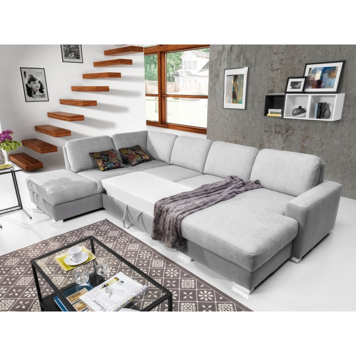 Model został wyposażony w funkcję spania typu delfin, pozwalającą na szybkie i łatwe rozłożenie narożnika. Powierzchnia spania o wymiarach 280x128 cm umożliwia wygodny sen dla dwóch osób. Dodatkowo narożnik posiada pojemnik na pościel, który sprawdzi się przy przechowywaniu koców, poduszek i innych tekstyliów, utrzymując porządek w salonie.