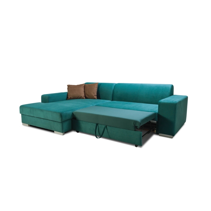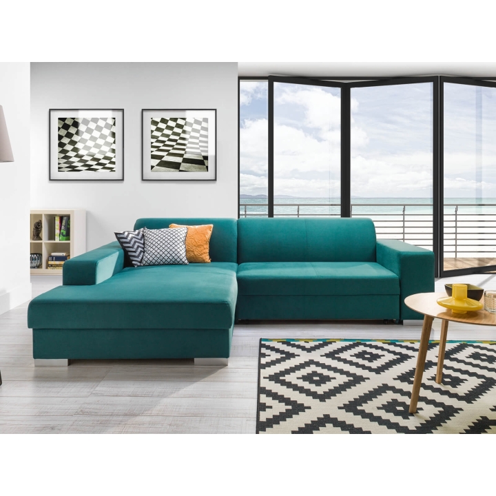 To narożnik, który łączy kompaktowe wymiary z pełnowymiarową funkcją spania i praktycznym pojemnikiem. Idealny wybór do salonu, w którym każdy detal ma znaczenie.