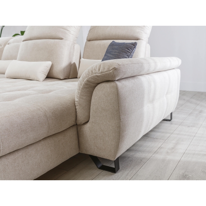 Choć narożnik nie posiada funkcji relaks, wygodę użytkowania zwiększają regulowane zagłówki, które pozwalają na dostosowanie wysokości oparcia do indywidualnych potrzeb. Wymiary 284 cm szerokości, 218 cm głębokości i 110 cm wysokości sprawiają, że Giovani L doskonale wpisuje się w przestronne salony, tworząc wygodną i estetyczną strefę odpoczynku.