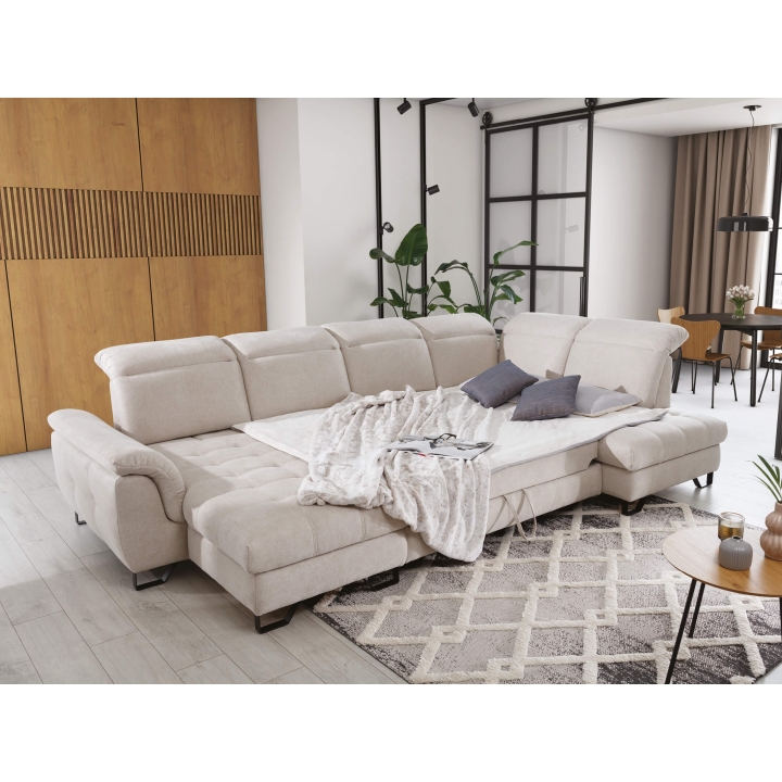 Mebel posiada funkcję spania typu puma, która umożliwia szybkie rozłożenie. Powierzchnia spania wynosi 260x135 cm, co pozwala na użytkowanie przez dwie osoby. Wewnątrz konstrukcji znajduje się pojemnik na pościel, który ułatwia przechowywanie koców, poduszek lub kołder.