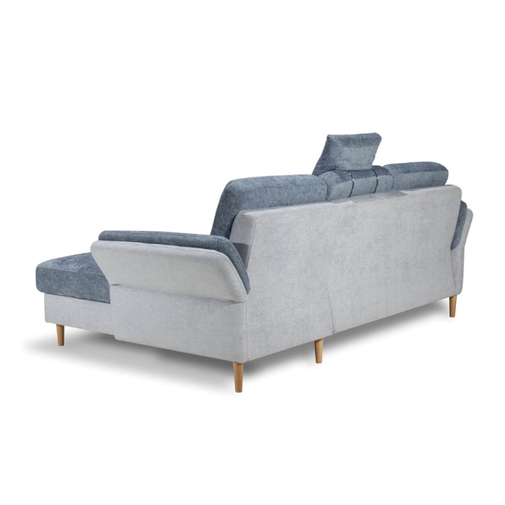 Model wyposażono w regulowane zagłówki, które można ustawić pod wybranym kątem. Wymiary narożnika to 226 cm szerokości, 155 cm głębokości i 96 cm wysokości, co sprawia, że mebel dobrze sprawdza się w pomieszczeniach o mniejszej powierzchni, oferując przy tym pełną funkcję spania.