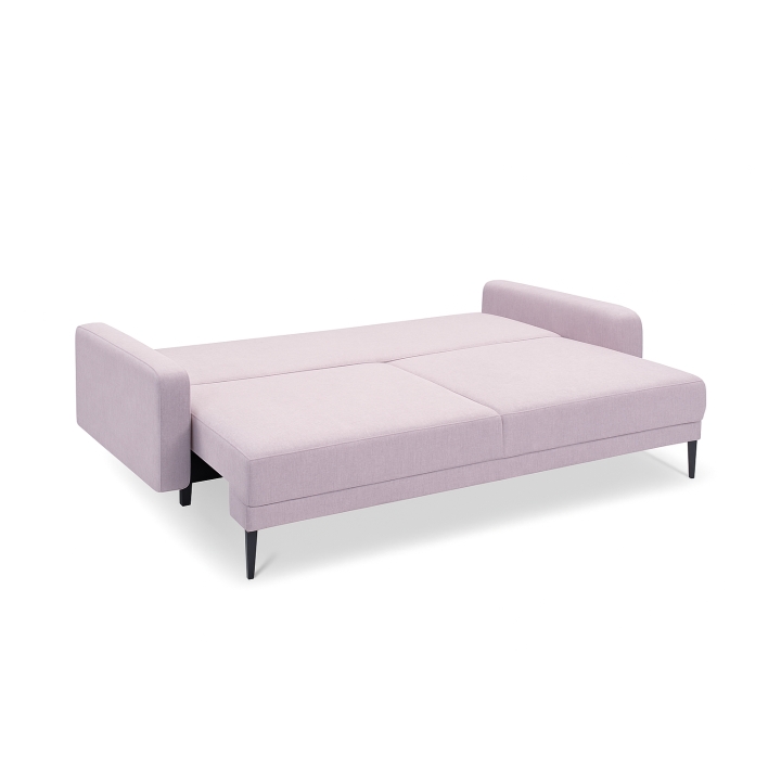 Po rozłożeniu sofa oferuje powierzchnię spania o wymiarach 150 × 199 cm, zapewniając odpowiednie miejsce do odpoczynku dla dwóch osób. Mechanizm rozkładania typu DL pozwala w prosty sposób przekształcić sofę w łóżko, a pod siedziskiem znajduje się pojemnik na pościel, umożliwiający przechowywanie kołder czy poduszek. Takie rozwiązanie sprawia, że mebel może pełnić również funkcję wygodnego miejsca noclegowego.
