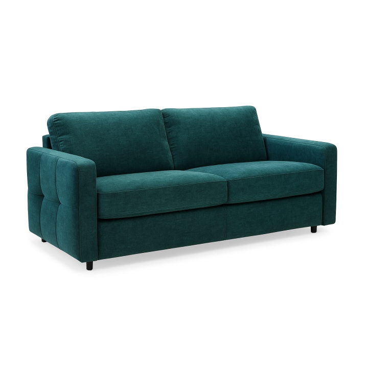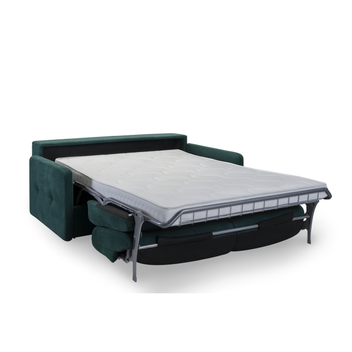 Model wyposażono w stelaż włoski typu MONO z materacem piankowym o grubości 12 cm, który gwarantuje wygodny i zdrowy sen. Mechanizm rozkładania został opracowany w sposób prosty i intuicyjny – po jego uruchomieniu siedzisko i oparcie chowają się pod stelażem, a użytkownik korzysta z oddzielnego materaca. Takie rozwiązanie podnosi komfort nocnego wypoczynku i sprawia, że sofa sprawdza się również jako codzienne miejsce do spania.