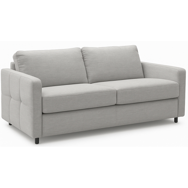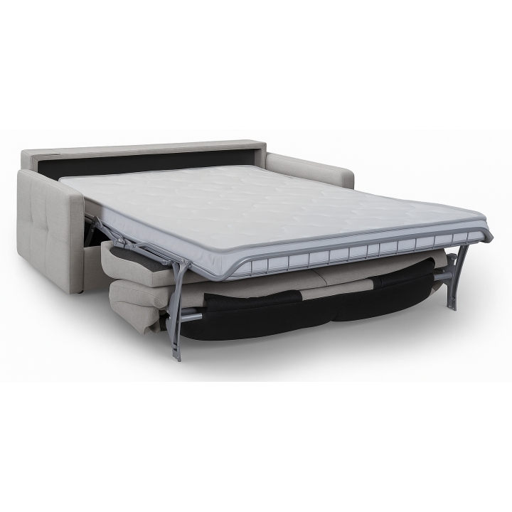 Model wyposażono w stelaż włoski typu PLUS oraz materac piankowy o grubości 12 cm, który gwarantuje komfortowy i stabilny sen. Mechanizm rozkładania działa w sposób prosty i intuicyjny – po rozłożeniu siedzisko i oparcie chowają się pod konstrukcją, a użytkownik korzysta z osobnego materaca. WERSJA PRO została dodatkowo wzmocniona drewnopochodnymi listwami i wyposażona w materac HYDRO ACTION, zwiększający wygodę podczas snu.