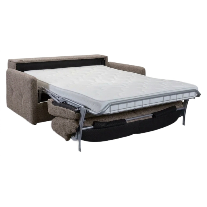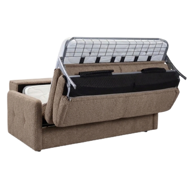 Jednym z kluczowych atutów sofy Ema 2(160) SFF jest jej funkcja spania. Dzięki zastosowaniu stelaża włoskiego typu MONO, mechanizm rozkładania jest niezwykle prosty i intuicyjny. Stelaż składa się z metalowej ramy, pasów tapicerskich oraz dużego elementu metalowego w kształcie kraty, zintegrowanego ze stelażem. Do stelaża przymocowany jest dwustronny materac o grubości 12 cm (z tolerancją +/- 1 cm), wykonany z pianki poliuretanowej, która równomiernie dopasowuje się do ciała użytkownika, zapewniając komfortowy sen.