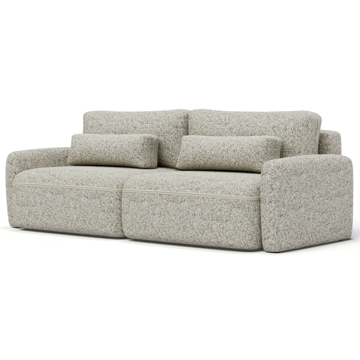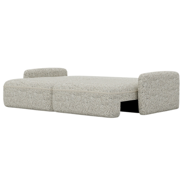 Rozkładanie odbywa się za pomocą mechanizmu DL, w którym siedzisko wysuwa się do przodu, a oparcie składa się, tworząc płaską powierzchnię spania o wymiarach 142 × 200 cm. Taki system pozwala w prosty sposób przekształcić mebel w pełnowymiarowe łóżko. W dolnej części konstrukcji znajduje się schowek na pościel, dyskretnie ukryty, a jednocześnie łatwo dostępny.