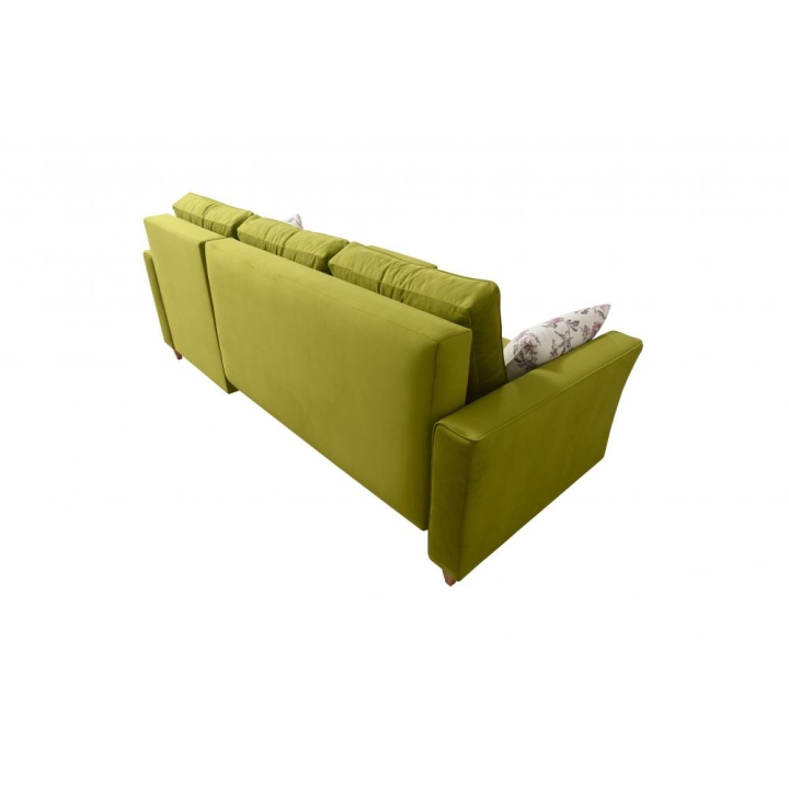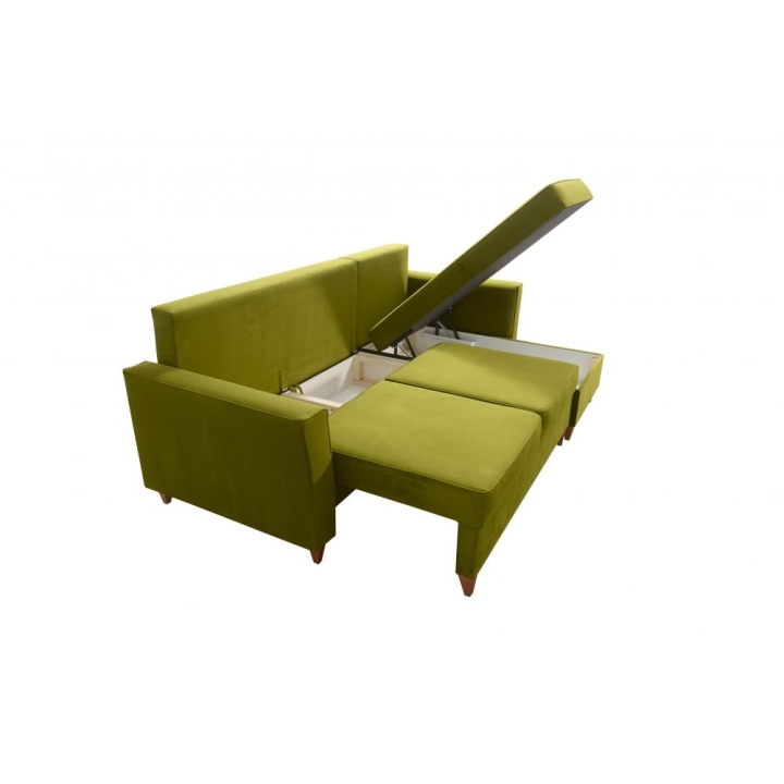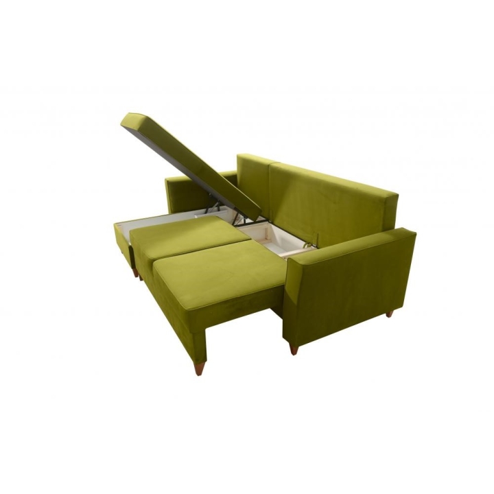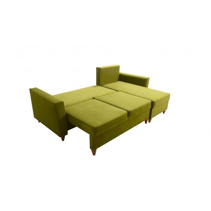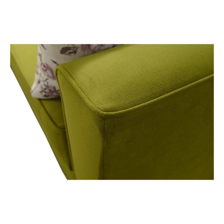 Stelaż wzmocniono ramą drewnianą łączoną z płytą wiórową, co zapewnia odpowiednią odporność na intensywne użytkowanie. Całość wykonana jest z materiałów o podwyższonej jakości, co przekłada się na długotrwałe zachowanie swoich właściwości. Dodatkowo dostępny jest wybór stopek drewnianych w kolorach: czarnym, białym, olcha, venge oraz buk, umożliwiający dopasowanie detali do charakteru wnętrza.