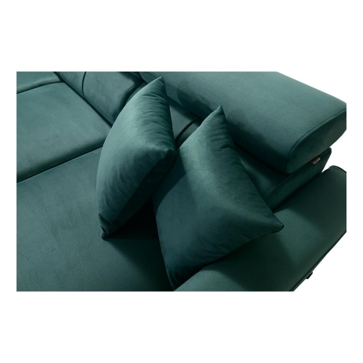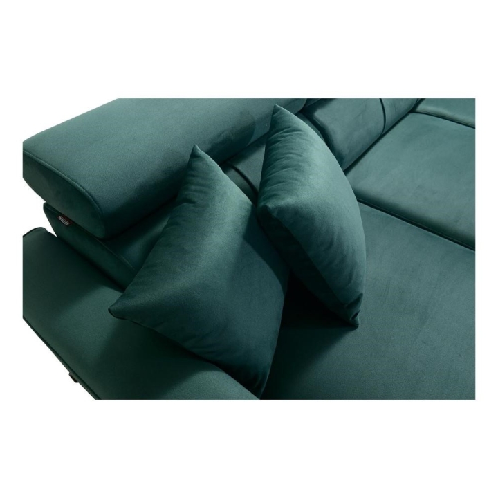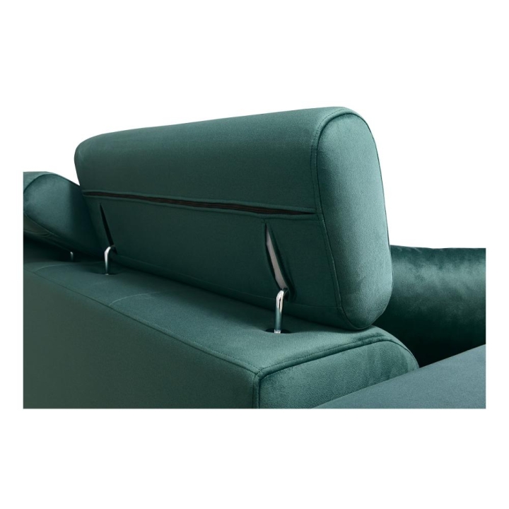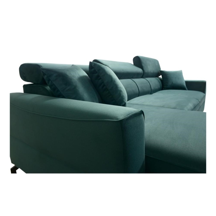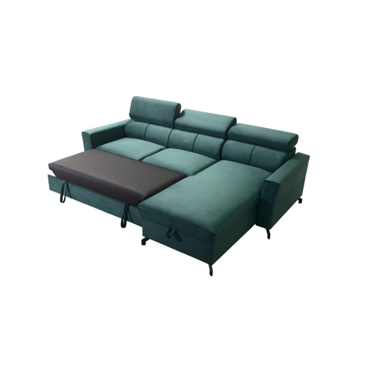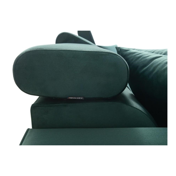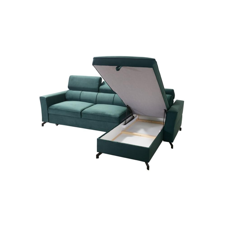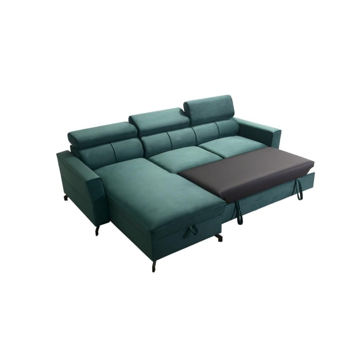 Elementem wyróżniającym model są 3 regulowane zagłówki, umożliwiające dopasowanie położenia do indywidualnych potrzeb. Dodatkowo w konstrukcji umieszczono 1 pojemnik na pościel, co zapewnia wygodę przechowywania bez obciążania przestrzeni dziennej. W zestawie znajdują się także poduszki widoczne na zdjęciu – GRATIS, stanowiące uzupełnienie całości.