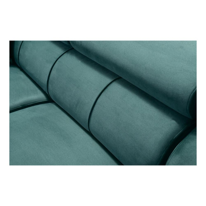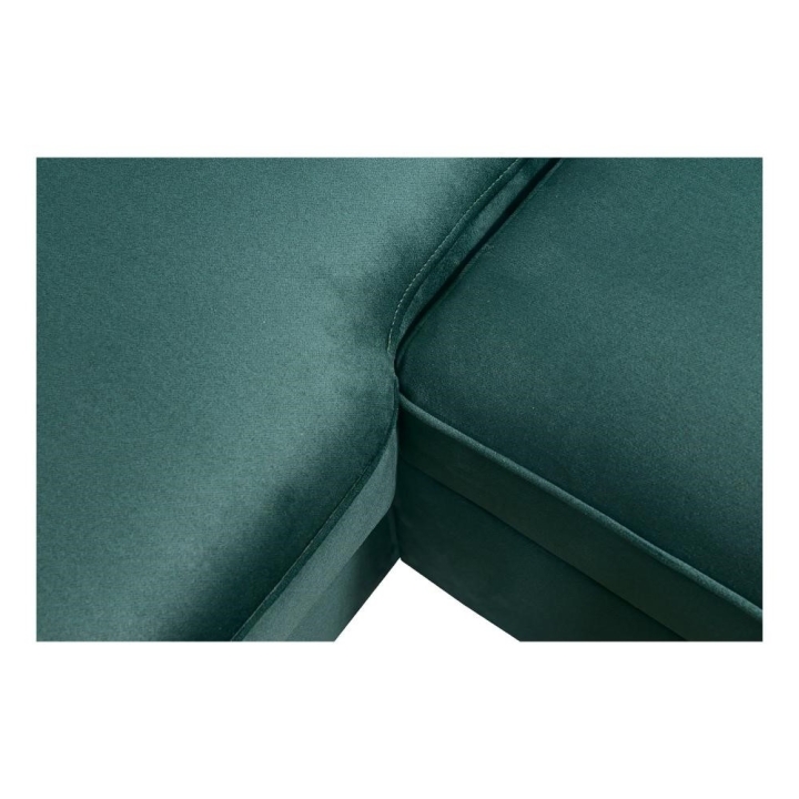 Mebel został zaprojektowany z wykorzystaniem materiałów bardzo wysokiej klasy, w tym sprężyn falistych oraz utwardzonej pianki T-30, co wpływa na trwałość i stabilność siedziska. Konstrukcja wsparta jest na stelażu z ramy drewnianej łączonej z płytą wiórową, dzięki czemu całość zachowuje odpowiednią sztywność. Do wyboru pozostają stopki przednie: metal chrom, metal czarny mat lub warianty drewniane w kolorach: czarnym, białym, olcha, venge i buk.