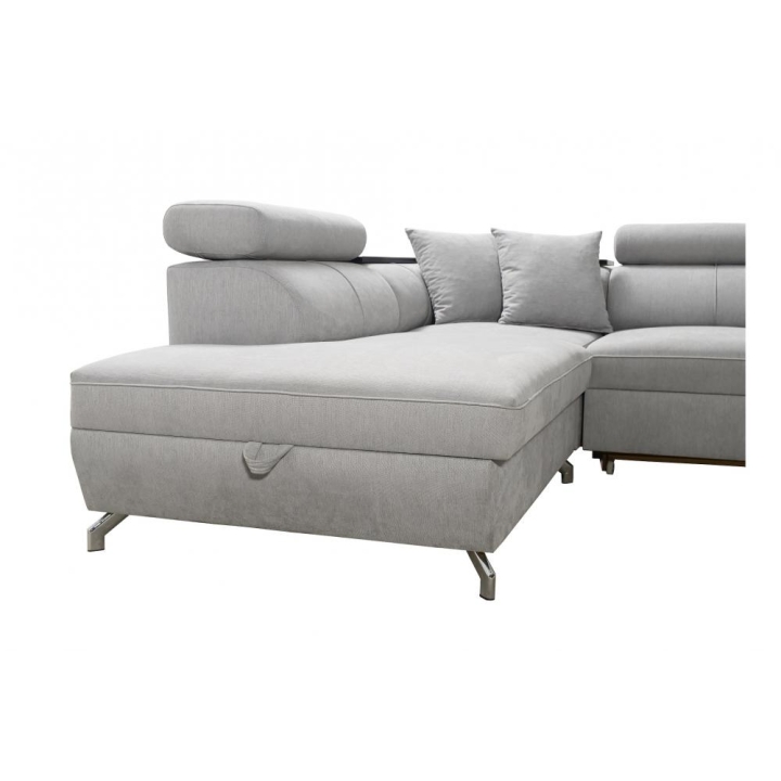Model wyposażono w elementy, które podnoszą wygodę oraz użyteczność. Narożnik posiada 3 regulowane zagłówki, pozwalające dopasować podparcie głowy do indywidualnych potrzeb. W konstrukcji przewidziano również 1 pojemnik na pościel, a także półkę w rogu, która może pełnić rolę miejsca na drobne przedmioty.