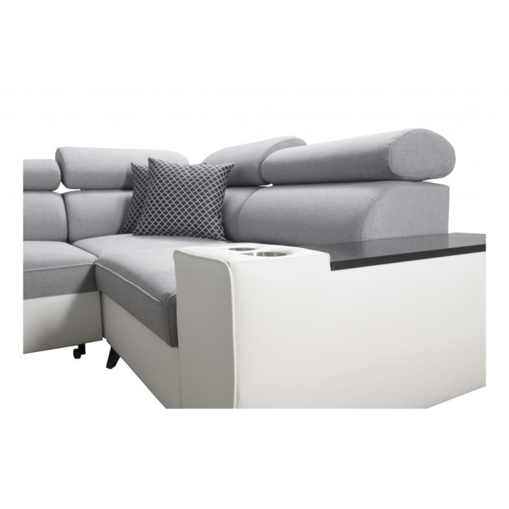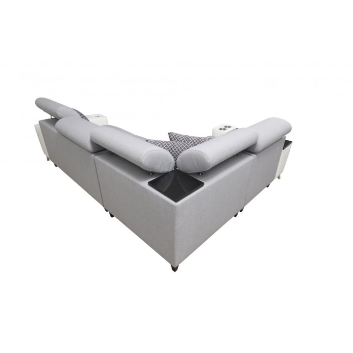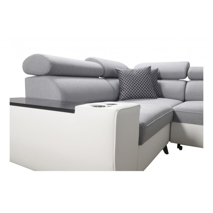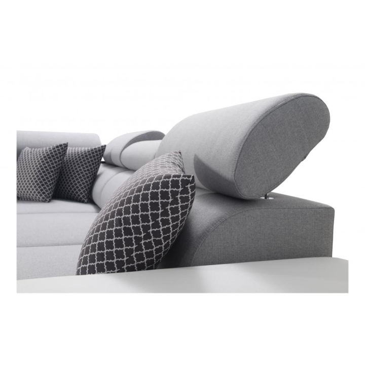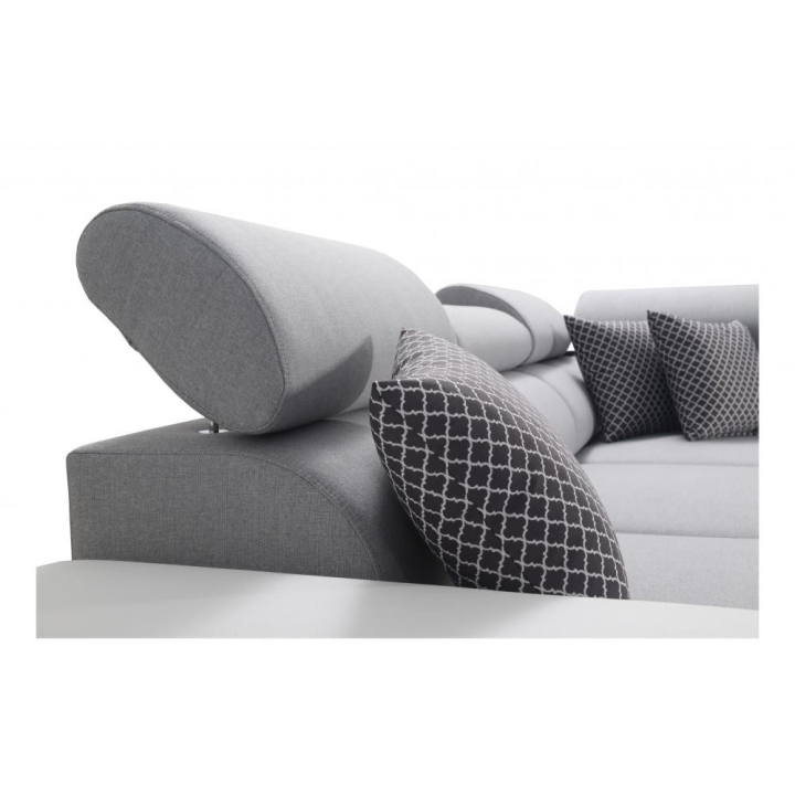 W wyposażeniu przewidziano 3 regulowane zagłówki, umożliwiające dopasowanie podparcia do aktualnych potrzeb. Do dyspozycji użytkownika pozostaje również 1 pojemnik na pościel, ułatwiający przechowywanie tekstyliów. Dodatkowym atutem jest otwierany barek, który zwiększa zakres zastosowań mebla w przestrzeni dziennej.