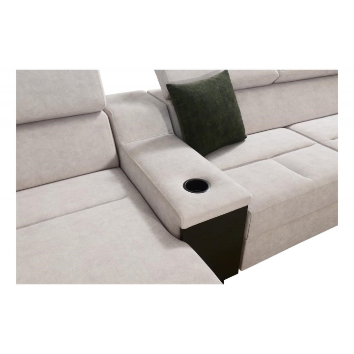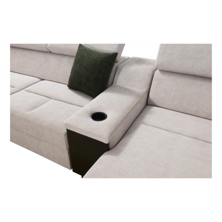Model wyposażono w powierzchnię spania 195 × 127 cm, która umożliwia komfortowy wypoczynek nocny. Konstrukcja obejmuje również 2 pojemniki na pościel, pozwalające na uporządkowane przechowywanie tekstyliów. Dodatkowym elementem jest otwierany barek, dyskretnie wkomponowany w bryłę narożnika.