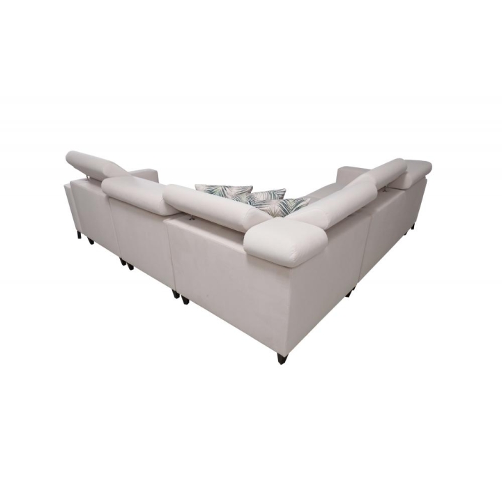 W konstrukcji zastosowano sprężyny faliste oraz utwardzoną piankę T-30, gwarantujące odpowiednią sprężystość i trwałość. Całość została osadzona na wzmocnionym stelażu wykonanym z ramy drewnianej łączonej z płytą wiórową, co podnosi stabilność mebla. Narożnik wyposażono w 6 regulowanych zagłówków, pozwalających na indywidualne ustawienie oparcia.