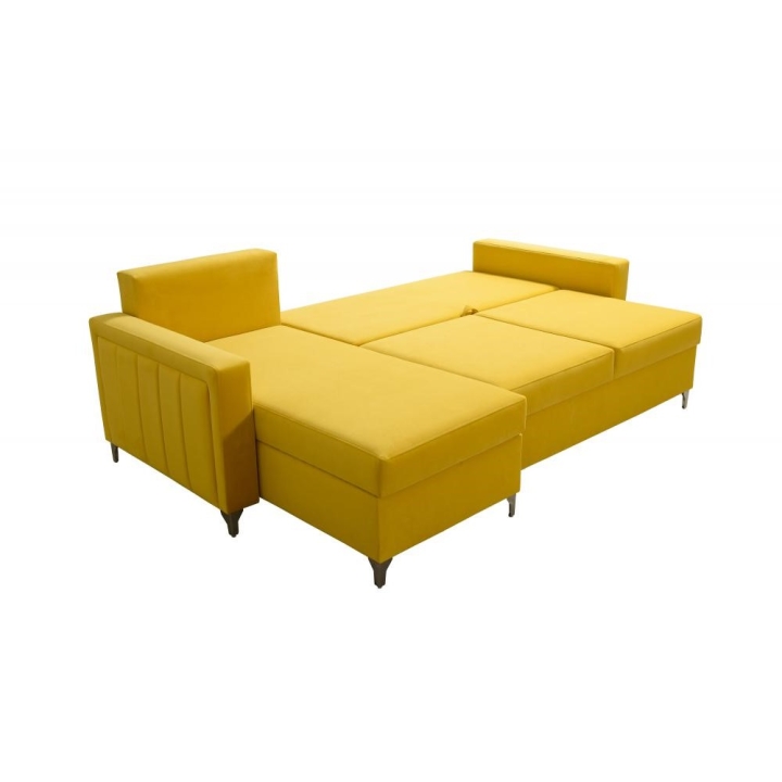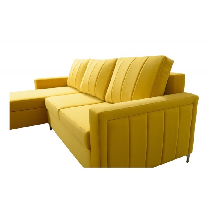 Narożnik wykonano na sprężynach falistych oraz utwardzonej piance T-30, z zastosowaniem tkanin najwyższej jakości. Całość wzmocniono stelażem opartym na ramie drewnianej łączonej z płytą wiórową, co wpływa na trwałość konstrukcji. Z przodu możliwy jest wybór stopek metalowych chromowanych lub drewnianych w kolorze czarnym, białym, olcha, venge i buk, natomiast z tyłu dostępne są stopki drewniane w tych samych kolorach lub chromowane za dopłatą.
