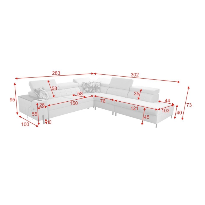 szer.: 283.00 cm , gł.: 208.00 cm, wys.: 73.00 cm