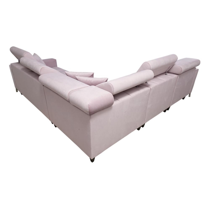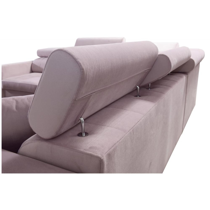 Konstrukcja została wykonana na sprężynach falistych oraz utwardzonej piance T-30, z wykorzystaniem tkanin najwyższej jakości. Całość wzmocniono stelażem na ramie drewnianej łączonej z płytą wiórową, co przekłada się na stabilność i trwałość. Mebel posiada 6 regulowanych zagłówków, pozwalających na indywidualne ustawienie oparcia.