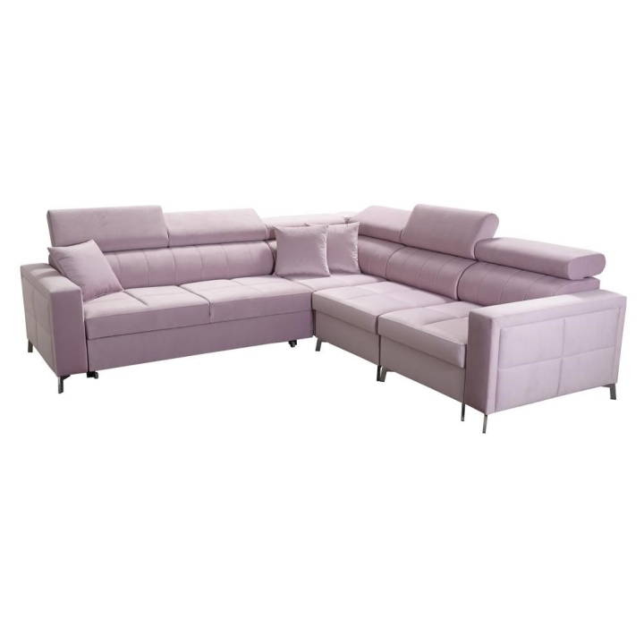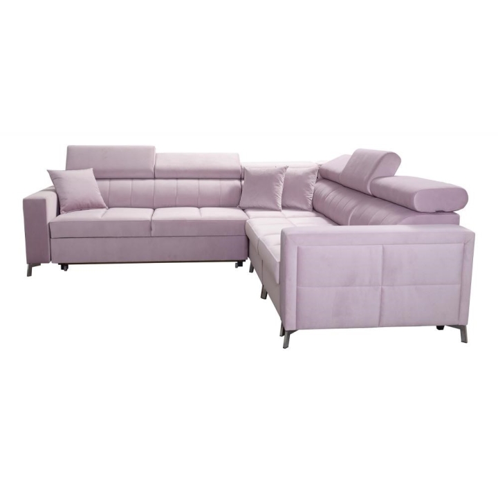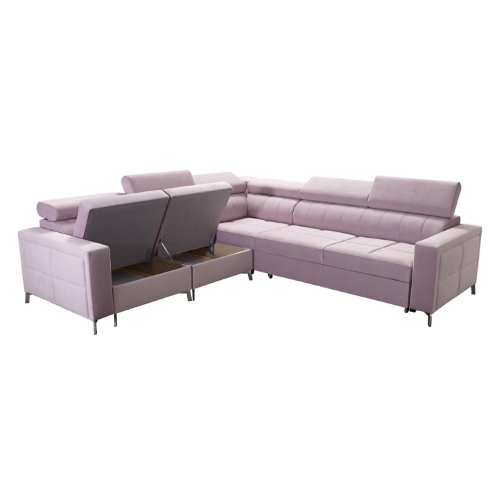Do wyboru przewidziano stopki przednie: metal chrom lub metal czarny mat, a także stopki tylne: drewniane w kolorze czarnym, białym, olcha, venge i buk lub chrom – za dopłatą. Narożnik może być w całości wykonany z dowolnej tkaniny; dzięki rozbudowanemu konfiguratorowi możliwe jest dopasowanie tapicerki do indywidualnych preferencji estetycznych. Do wyboru pozostają dziesiątki tkanin o różnych fakturach, kolorach i właściwościach, co pozwala z łatwością wpisać mebel w zamierzony koncept aranżacyjny, oferując wygodę użytkowania oraz pełną personalizację wizualną.