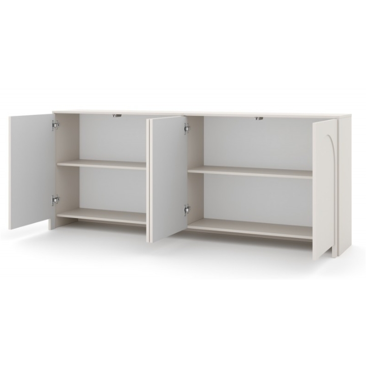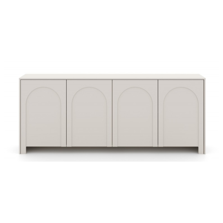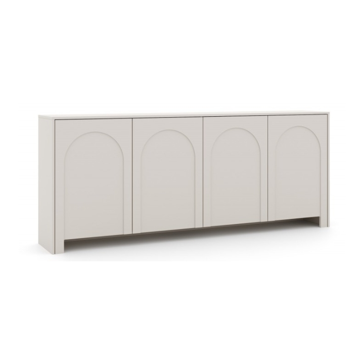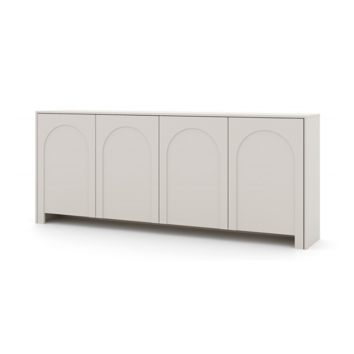Komoda Arco 4D Kaszmir to mebel, którego kaszmirowy odcień nadaje wnętrzu harmonii i subtelnego uroku. Charakterystyczne dla kolekcji są delikatne frezowania w kształcie łuku, umieszczone na drzwiach, które nadają całości lekkości. Dzięki temu komoda nabiera wyjątkowego charakteru i staje się wyszukaną ozdobą pomieszczenia.