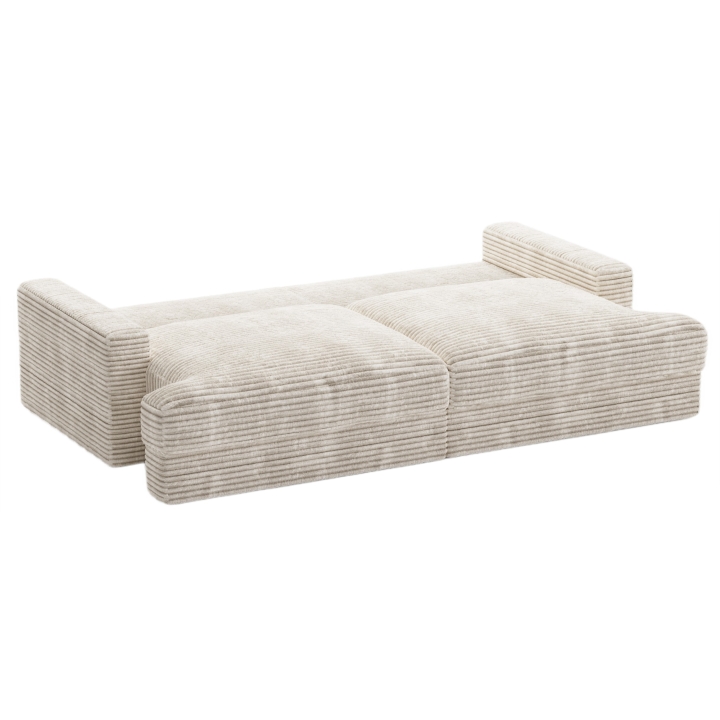 Model Mona został wyposażony w mechanizm DL umożliwiający szybkie rozkładanie mebla. Wysuwane do przodu siedzisko oraz składane na płasko oparcie tworzą w ten sposób powierzchnię spania o wymiarach 160x220 cm. Dodatkowo w konstrukcji ukryto praktyczny pojemnik na pościel, zapewniający wygodne przechowywanie.