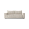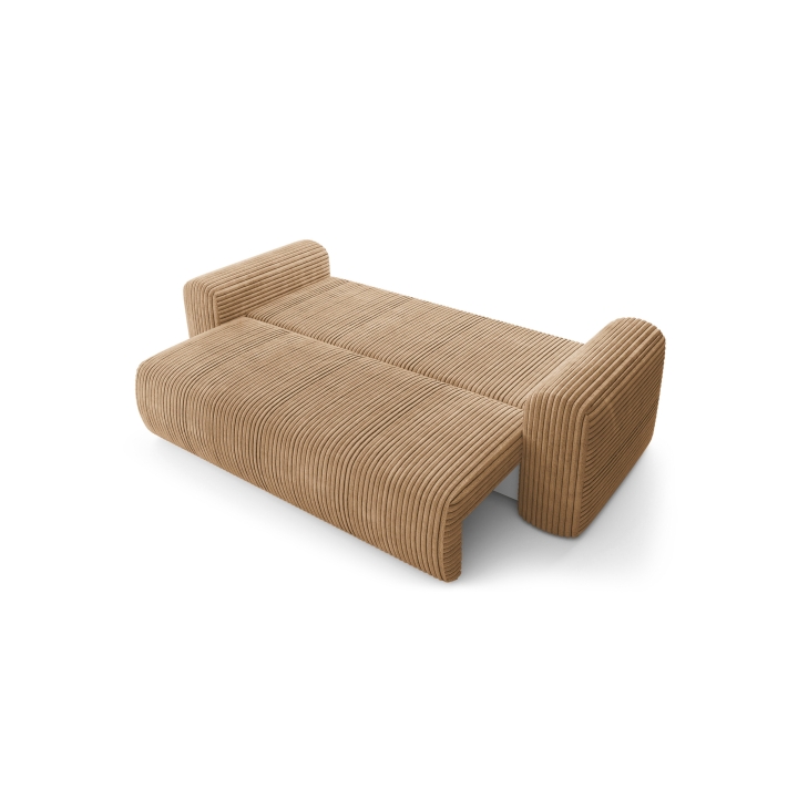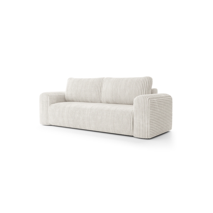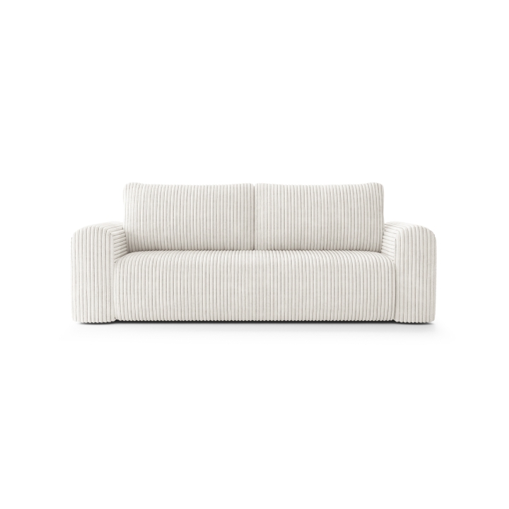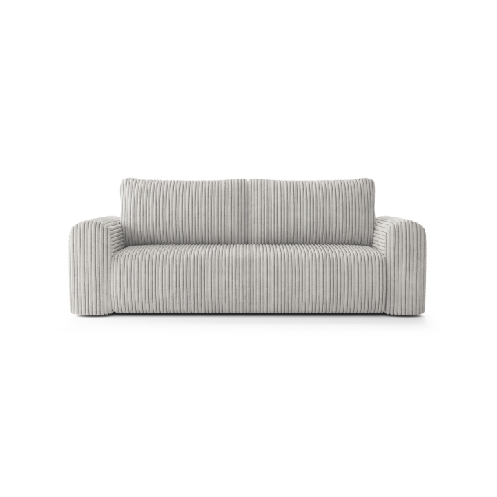 Sofa Laco to mebel zaprojektowany w duchu minimalizmu, który łączy funkcję siedziska dziennego z możliwością wygodnego spania. Jej proporcje – szerokość 245 cm, głębokość 100 cm i wysokość 85 cm – nadają bryle wyważony charakter, pozwalając na komfortowe użytkowanie zarówno w mniejszych, jak i większych wnętrzach. Dodatkowym atutem jest obecność pojemnika na pościel, który sprytnie ukryto wewnątrz konstrukcji.