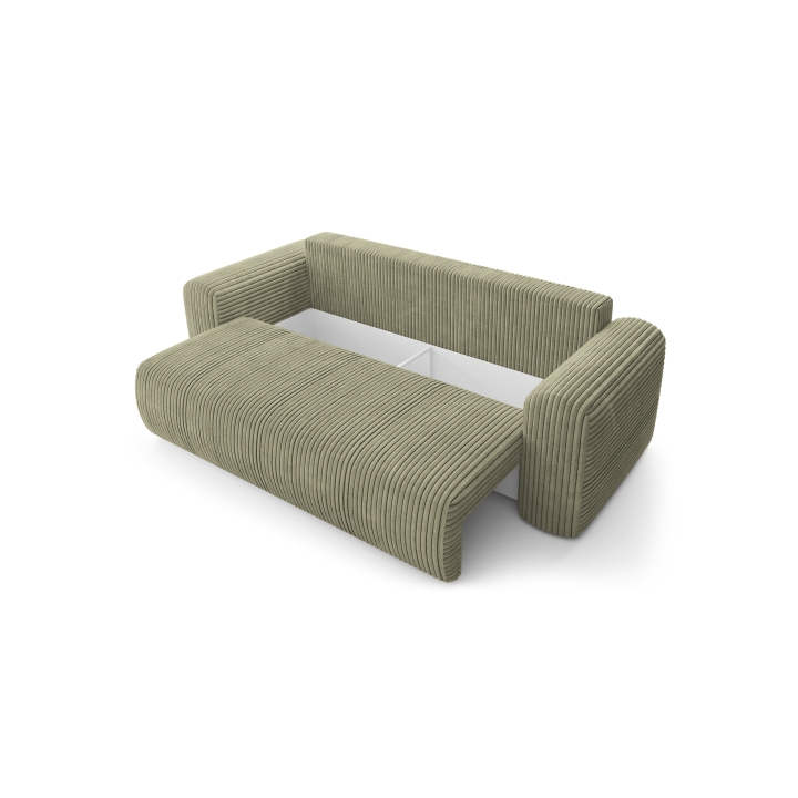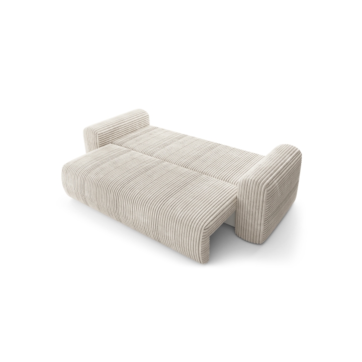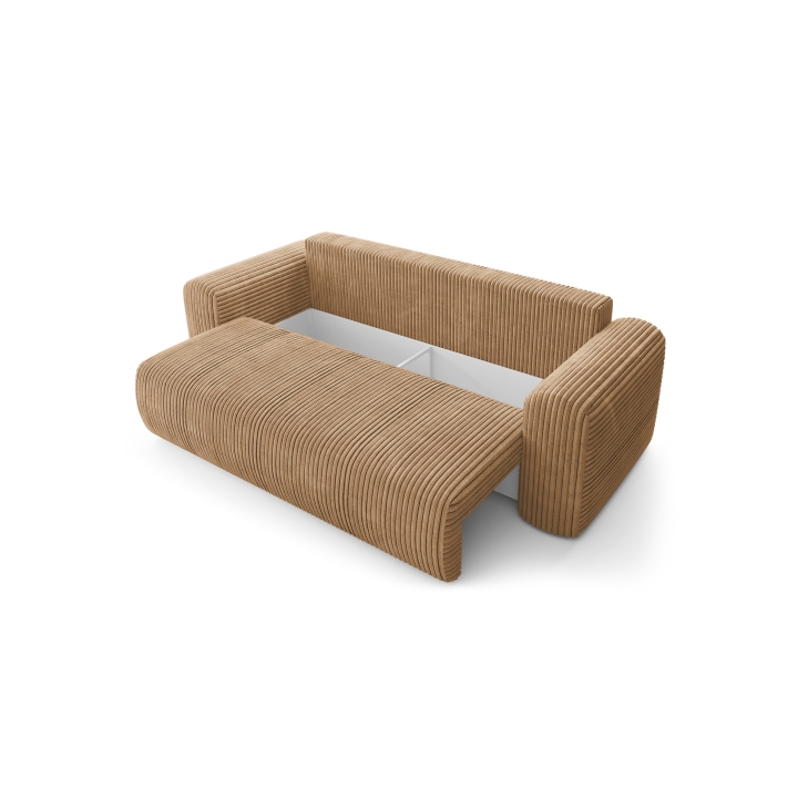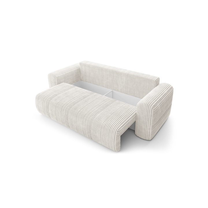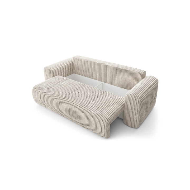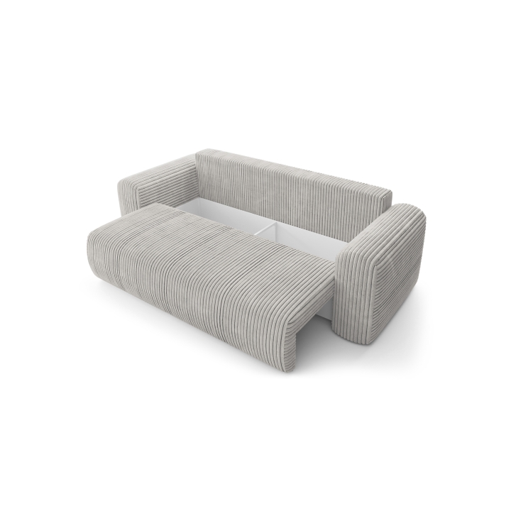 System rozkładania typu DL sprawia, że zmiana z sofy w łóżko przebiega sprawnie i intuicyjnie. Siedzisko wysuwa się do przodu, a oparcie układa się płasko, tworząc jednolitą przestrzeń do odpoczynku nocnego. W efekcie powstaje powierzchnia spania o wymiarach 155 x 192 cm, zapewniająca odpowiednią ilość miejsca dla dwóch osób.