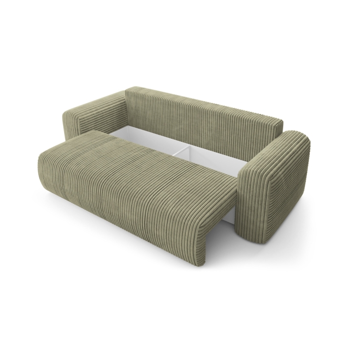 System rozkładania typu DL sprawia, że zmiana z sofy w łóżko przebiega sprawnie i intuicyjnie. Siedzisko wysuwa się do przodu, a oparcie układa się płasko, tworząc jednolitą przestrzeń do odpoczynku nocnego. W efekcie powstaje powierzchnia spania o wymiarach 155 x 192 cm, zapewniająca odpowiednią ilość miejsca dla dwóch osób.