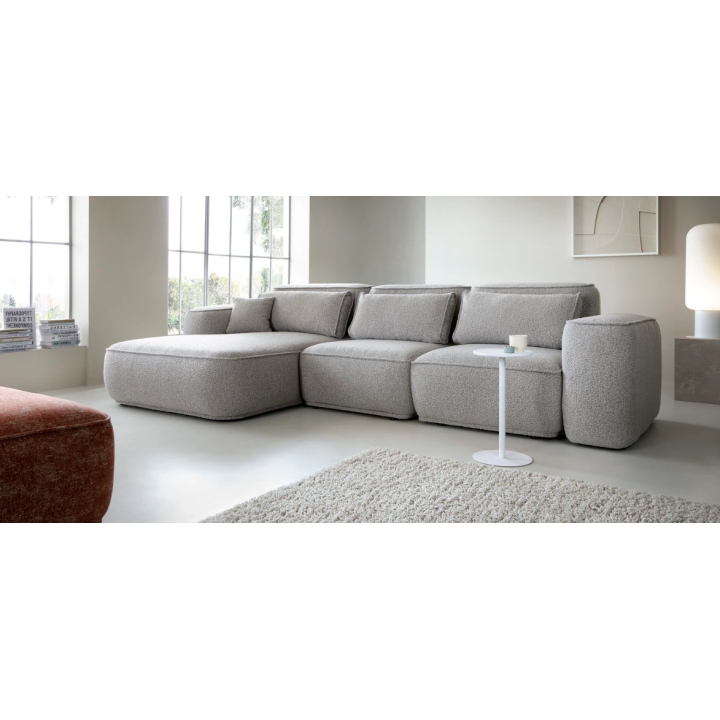 Narożnik Buffalo prezentuje nowoczesne wzornictwo, podkreślone wyrazistą sylwetką oraz starannie dobranymi materiałami. Jego obicie z tkaniny bouclé Legend 4 zapewnia przyjemną w odbiorze strukturę i nadaje meblowi wyraz charakterystyczny dla współczesnych aranżacji. Model dostępny jest w wersji prawo- lub lewostronnej, co ułatwia dopasowanie go do układu pomieszczenia.