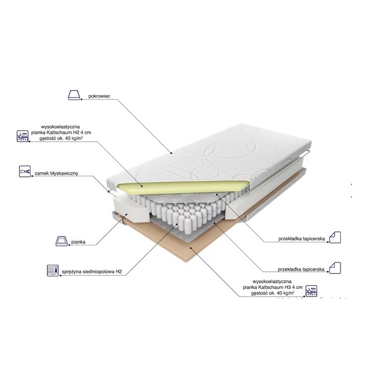 Zewnętrzne warstwy wykonano z wysokoelastycznej pianki Kaltschaum, znanej z trwałości, sprężystości i odporności na odkształcenia.