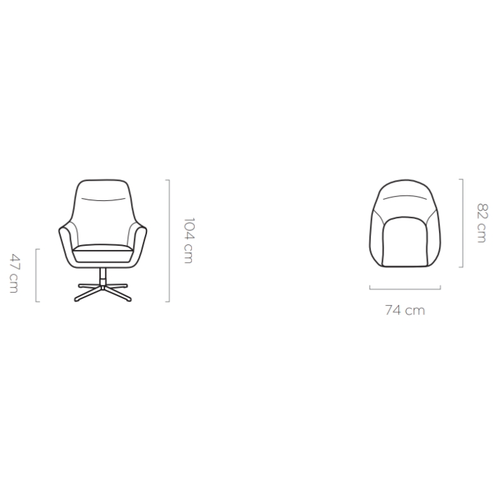 Polo cechuje się starannie dopracowanymi proporcjami – jego szerokość wynosi 74 cm, wysokość 104 cm, a głębokość całkowita 82 cm, co gwarantuje komfort użytkowania bez poczucia ograniczenia przestrzeni. Siedzisko umieszczone jest na wysokości 47 cm, co umożliwia wygodne dopasowanie do większości biurek i toaletek. Całość osadzona została na czarnej, metalowej podstawie, która dodaje całości współczesnego wyrazu i zapewnia stabilność konstrukcji.