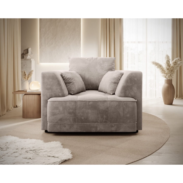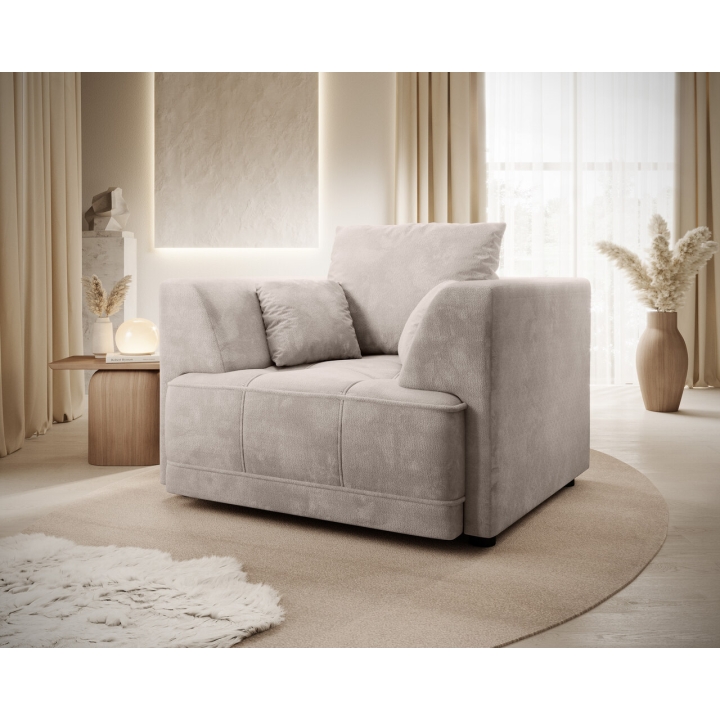 Fotel Tiga marki Wersal to kompaktowy mebel o oszczędnej formie, stworzony z myślą o kameralnych strefach relaksu. Może stanowić uzupełnienie sofy lub narożnika z tej samej kolekcji, ale również świetnie odnajduje się jako autonomiczny element aranżacji. Miękko zaokrąglona linia bryły, obszerne podłokietniki oraz dodatkowe poduszki sprzyjają wypoczynkowi, otulając przyjemnym komfortem.