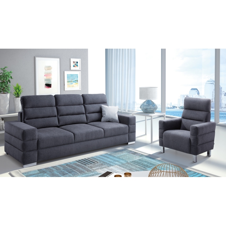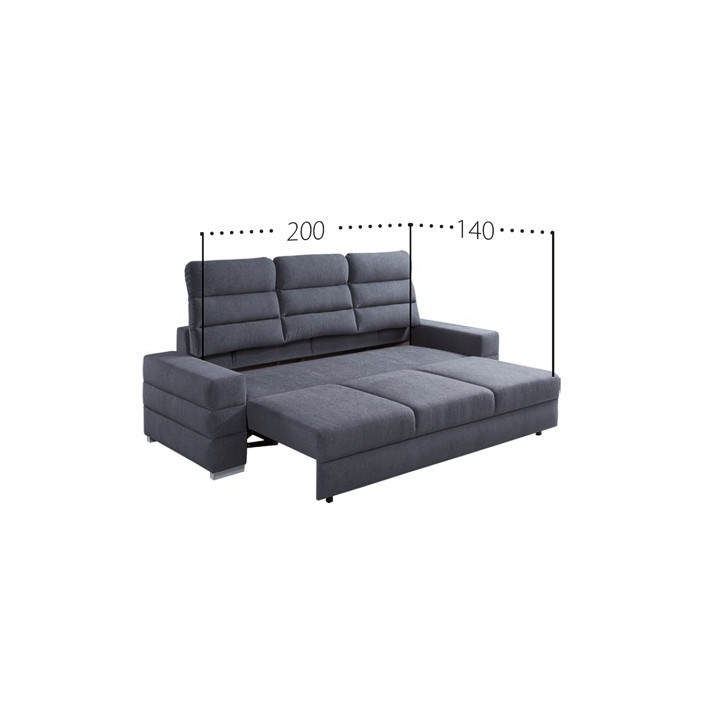 Sofa Metro w standardzie nie posiada pojemnika na pościel, jednak dostępna jest opcja jego zamówienia w podłokietniku. Otwierany bok o szerokości 24 cm umożliwia przechowywanie drobnych akcesoriów lub zestawu pościeli. Tapicerka może być wykonana w wersji gładkiej lub z przeszyciami, w zależności od preferencji.