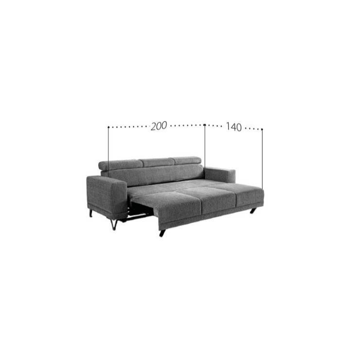 W standardzie sofa nie posiada pojemnika na pościel, jednak dostępna jest opcja jego zamówienia w podłokietniku. Otwierany bok o szerokości 24 cm umożliwia przechowywanie drobnych akcesoriów lub zestawu pościeli. Tapicerka może być wykonana w wersji gładkiej lub z przeszyciami, co pozwala dopasować wygląd mebla do wnętrza.