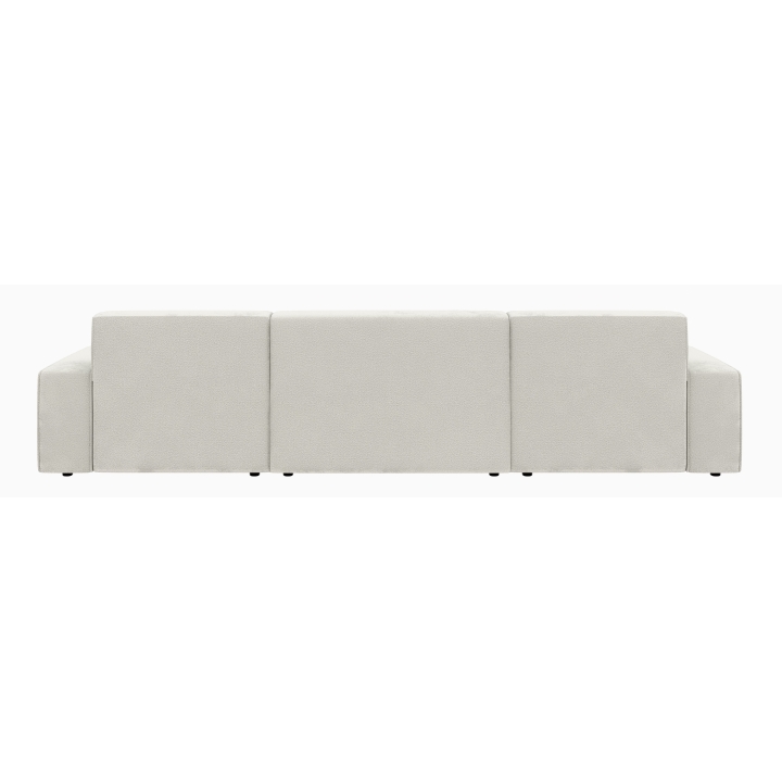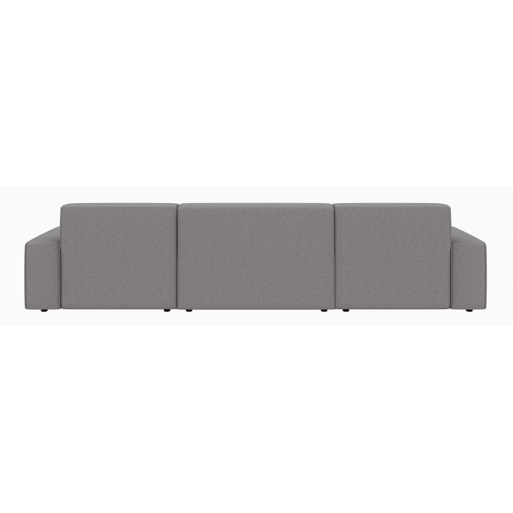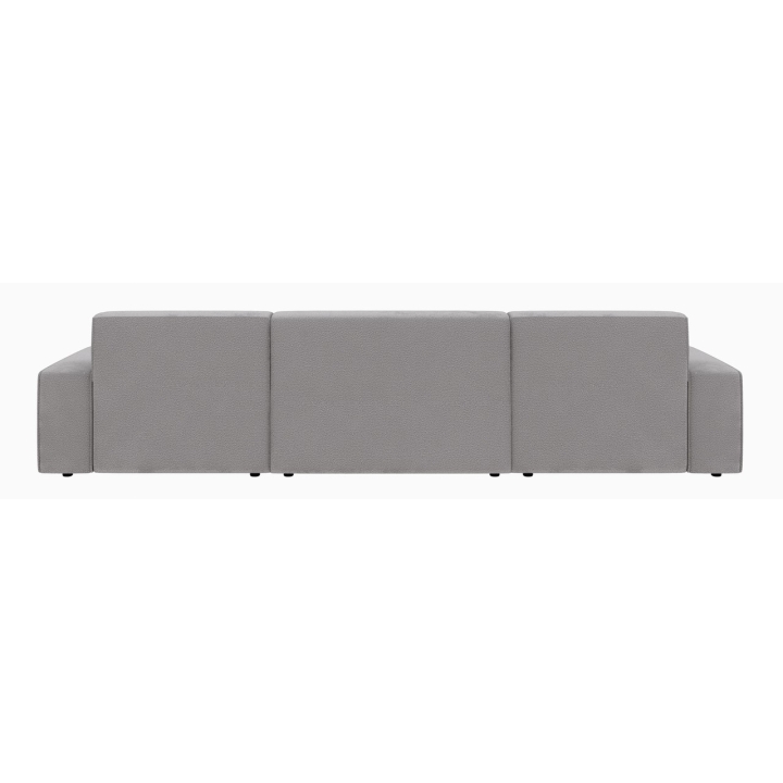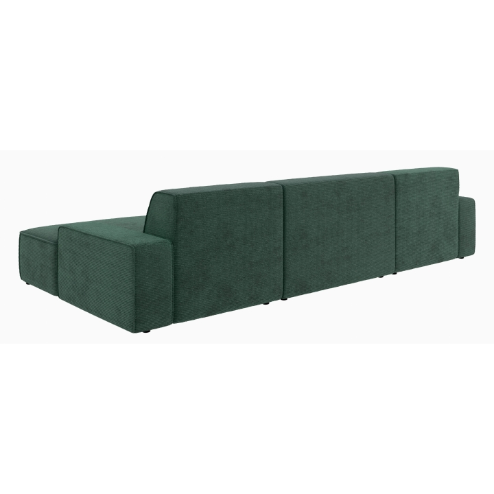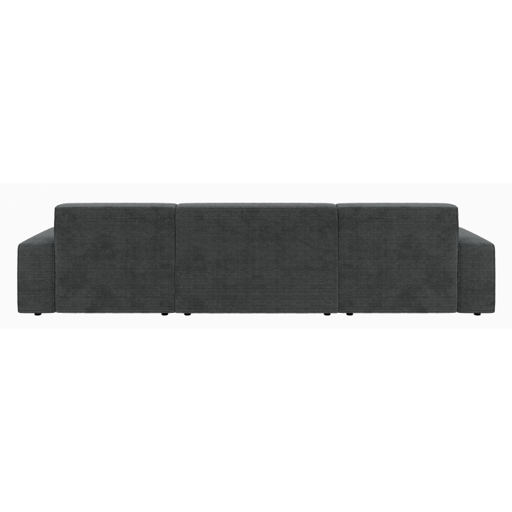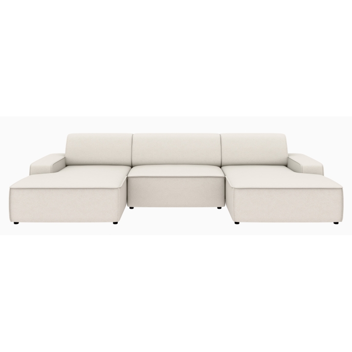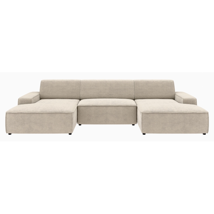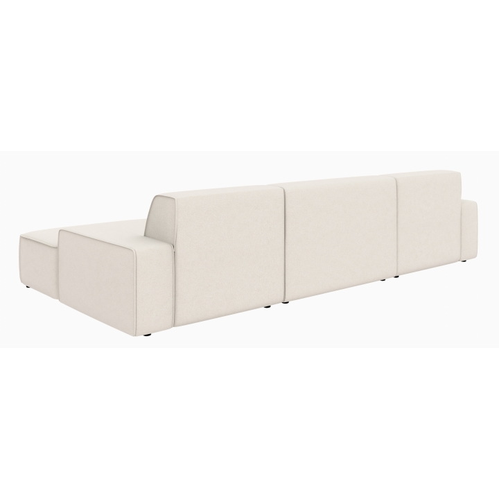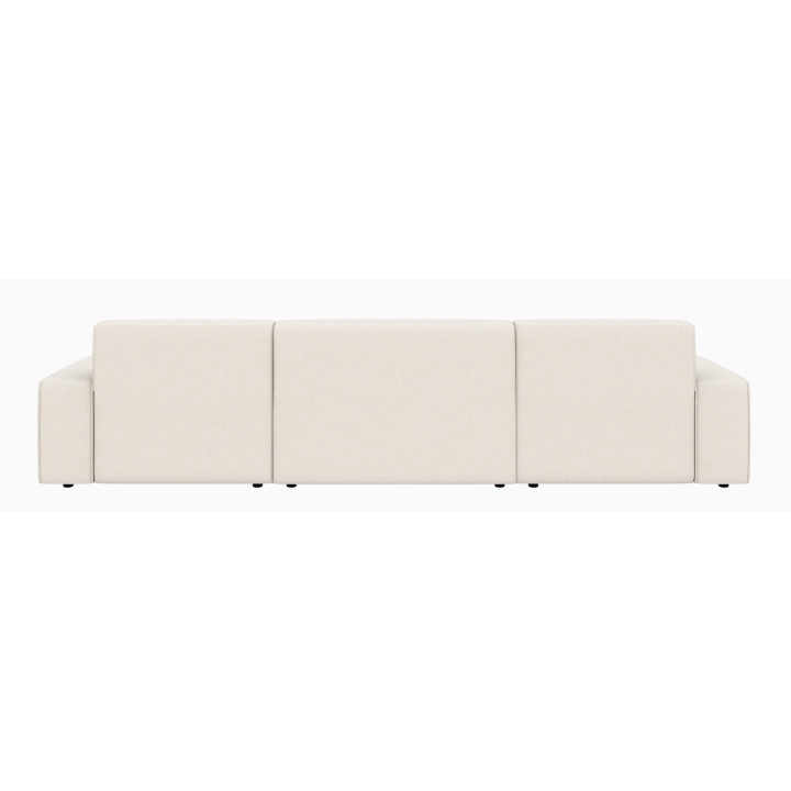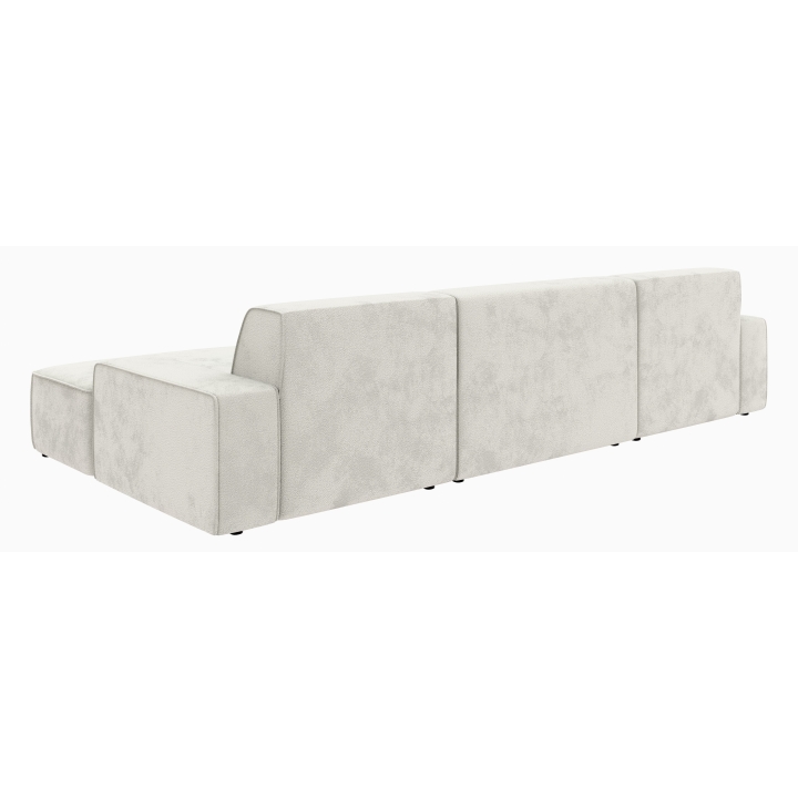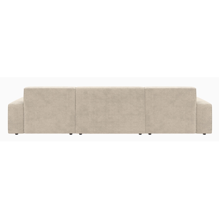 Po dodaniu pufa można wypełnić przestrzeń pomiędzy szezlongami, co daje powierzchnię do spania o wymiarach 281 x 123 cm. To rozwiązanie szczególnie przydatne podczas okazjonalnych noclegów gości. Pojemnik na pościel umieszczony w konstrukcji narożnika pozwala na przechowywanie dodatkowych tekstyliów, utrzymując porządek w salonie.
