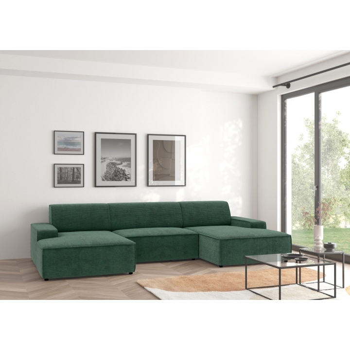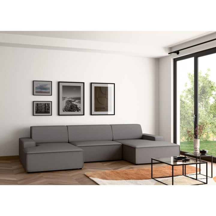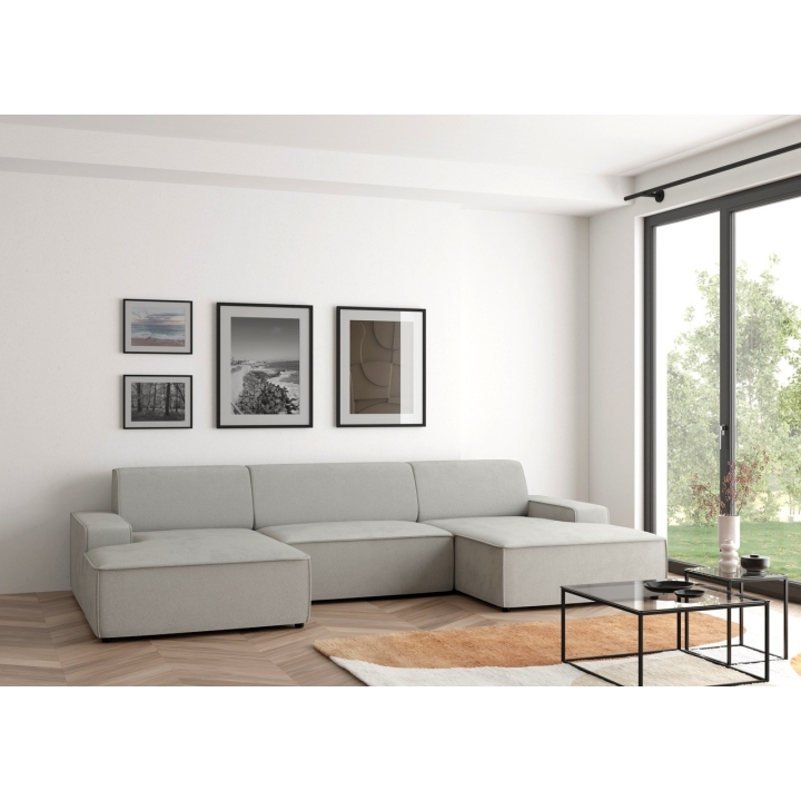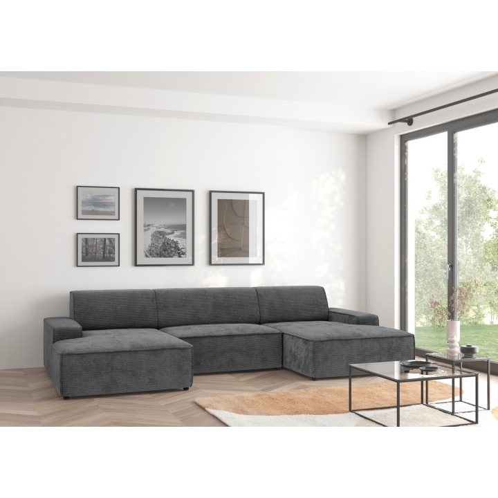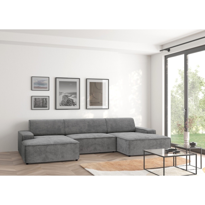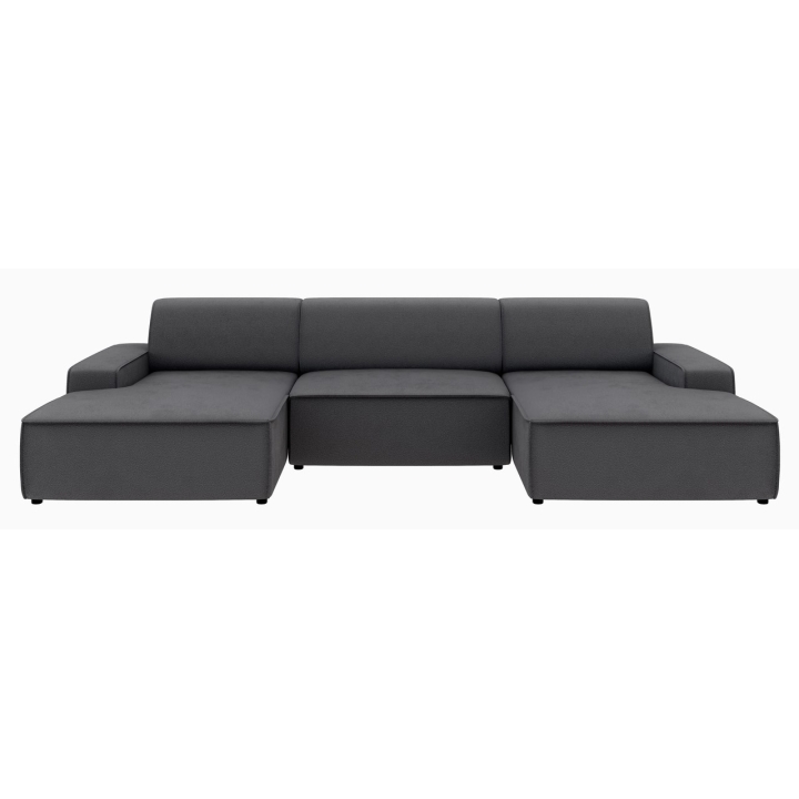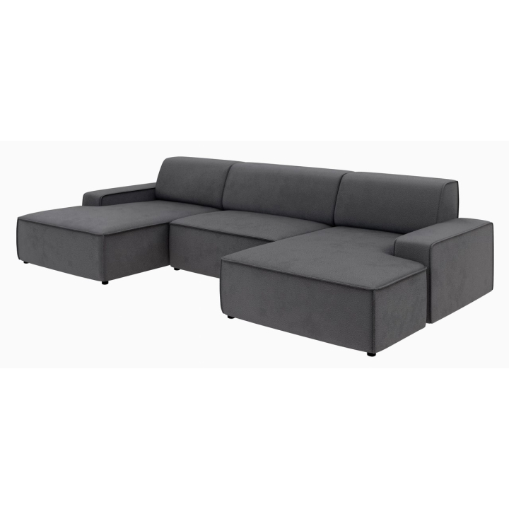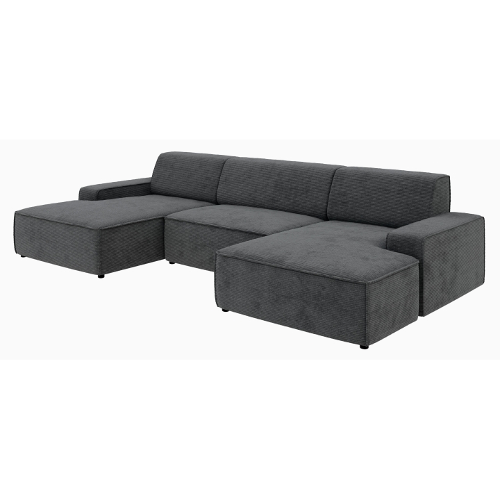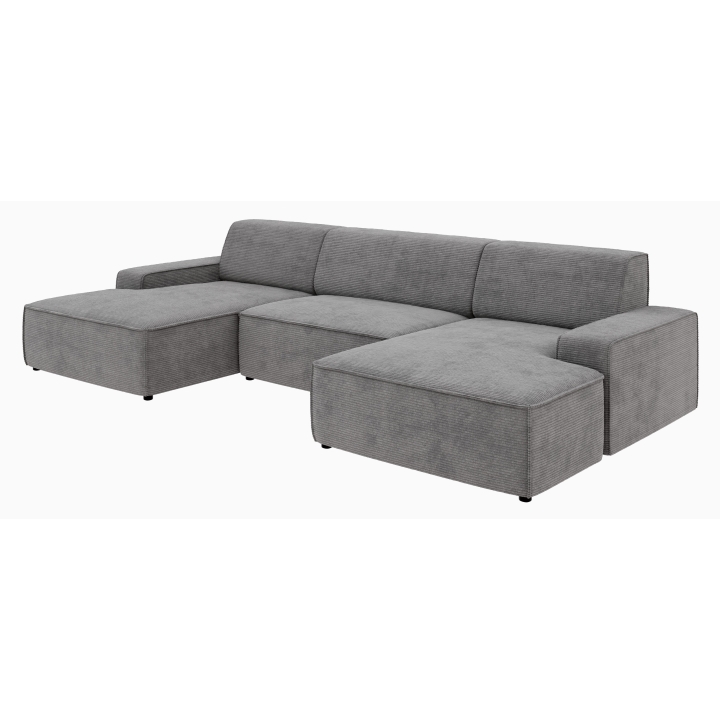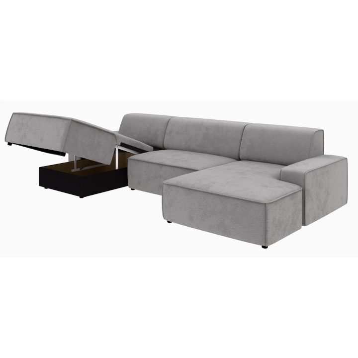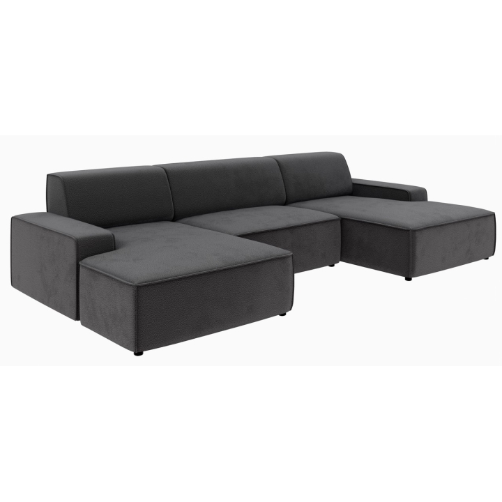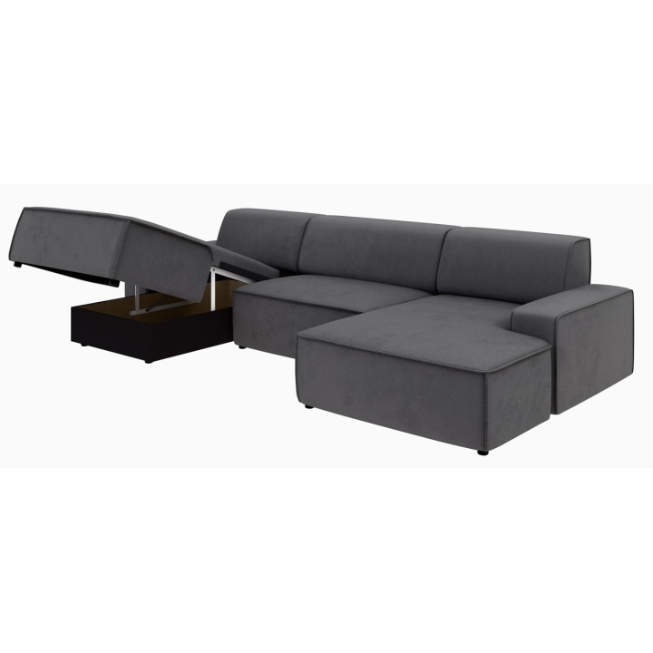 Narożnik Graz REC-2-REC/BK to propozycja dla osób ceniących prostą, geometryczną formę mebla, która wpisuje się w różnorodne aranżacje domowe. Ukształtowany w literę U, zapewnia wygodną przestrzeń wypoczynkową dla całej rodziny. Model można ustawić z pojemnikiem na pościel zarówno po lewej, jak i prawej stronie, co zwiększa możliwości dopasowania do układu wnętrza.
