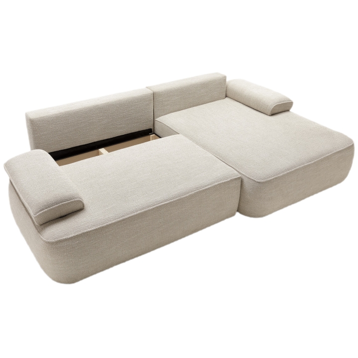 Rozkładanie ułatwia mechanizm DL, dzięki któremu siedzisko wysuwa się do przodu, a oparcie opada, tworząc płaską powierzchnię do spania o wymiarach 215 × 135 cm. To rozwiązanie pozwala w szybki sposób zmienić narożnik w pełnowymiarowe łóżko, bez konieczności użycia dużej siły. Dodatkowo w konstrukcji ukryty jest pojemnik na pościel, który pomaga zachować porządek i zaoszczędzić miejsce w szafach.