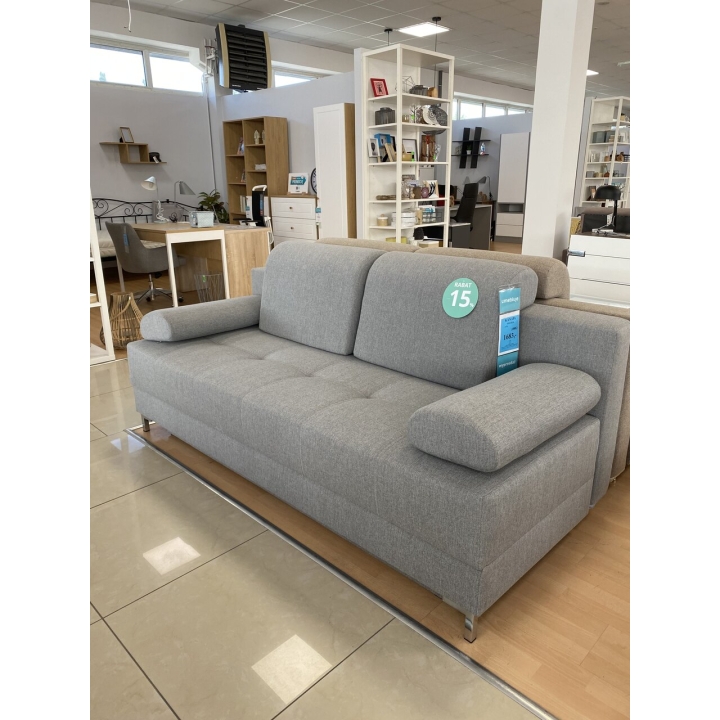 Kanapa Sylwia oferowana jest w szarej tkaninie, której neutralna kolorystyka wpasowuje się w różne koncepcje wystroju. Starannie dobrany materiał tapicerski cechuje się przyjemną w dotyku fakturą i jest łatwy w codziennej pielęgnacji. Subtelne przeszycia podkreślają wysoką jakość wykończenia.
