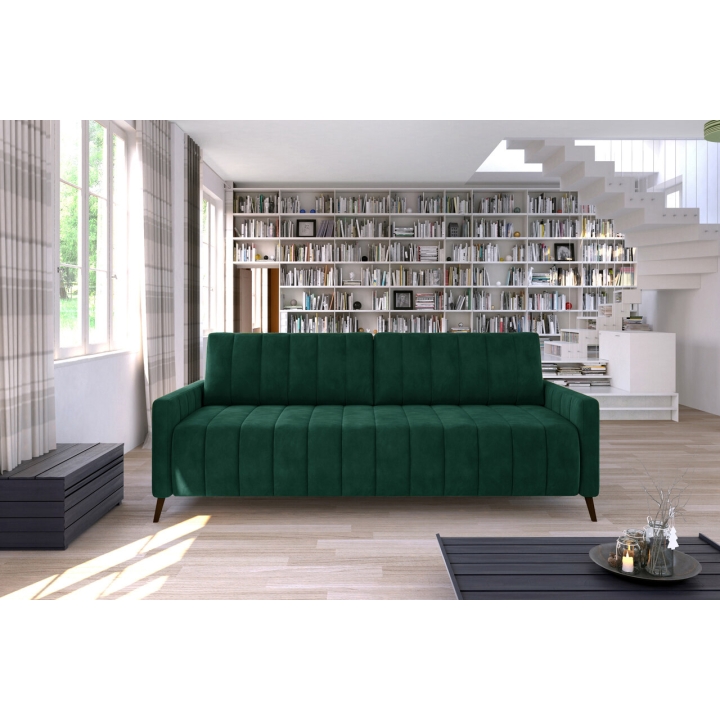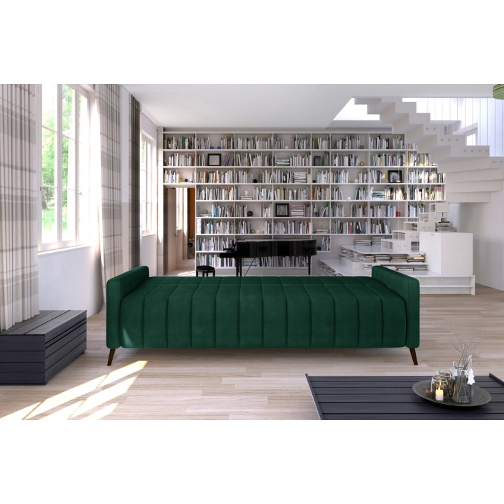 Sofa Molly marki Wersal to przemyślana propozycja dedykowana osobom poszukującym mebla do kompaktowych przestrzeni, w których niezbędne jest zarówno wygodne miejsce do odpoczynku w ciągu dnia, jak i komfortowa strefa nocnego wypoczynku. Jej współczesna forma wzbogacona pionowe, symetryczne przeszycia, które przyciągają uwagę i dodają charakteru każdemu wnętrzu. Wysokie, 14-centymetrowe nogi z drewna nadają konstrukcji lekkości oraz sprawiają, że utrzymanie porządku w jej otoczeniu staje się znacznie łatwiejsze.
